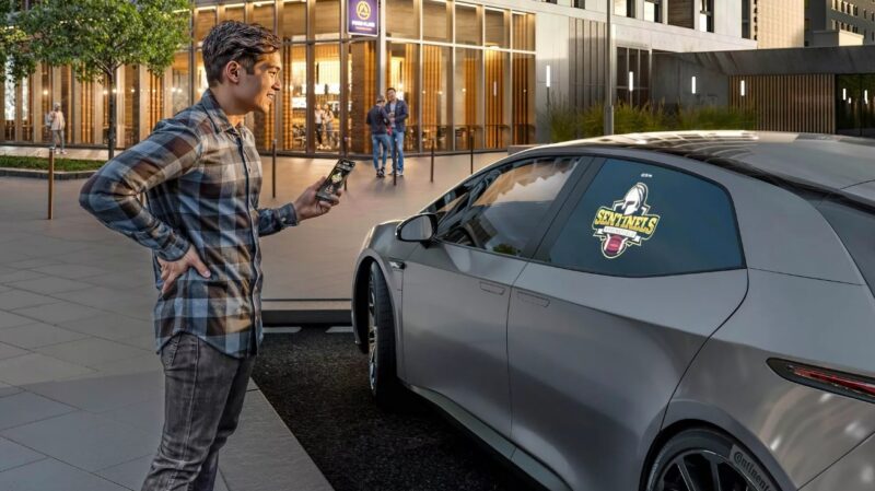 A CES kiállításon megjelenő fejlesztés lényegében a HUD (Head-up Display), ami nem a bent ülő sofőrnek, hanem a külvilág számára jelenít meg információt. Ehhez egy elsötétedő oldalsó ablakra és egy tetőbe integrált projektorra van szükség. Innentől kezdve bármi megjeleníthető az üvegen, egy villanyautó esetében például a töltés státusza. Az információk főleg a sofőrnek szólnak, aki éppen közelít az autójához. Ha lemerülőben vannak az akkumulátorok, akkor képes töltőpontot ajánlani, de akár releváns torlódásról és balesetekről is tájékoztathatja az éppen útnak induló sofőrt.
