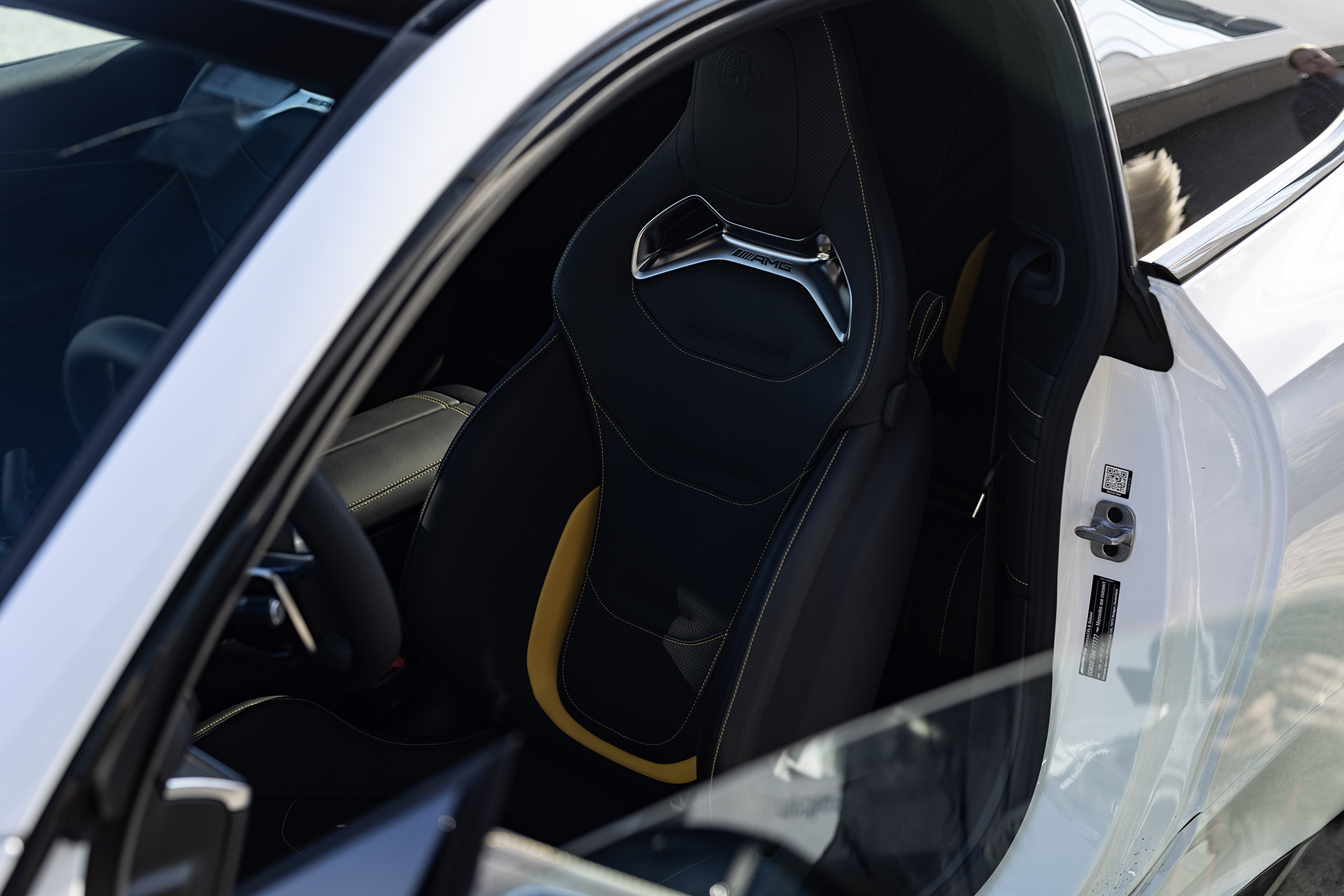 Bent a C-osztály fogad, csak épp sportkormánnyal, és sportülésekkel. Utóbbiakból kétféle is rendelkezésre áll. Egy szinte versenyautós, igazi kagylóülés, vagy a szintén nagyon jó oldaltartású, de kevésbé kagylósított. Igazi csemege még a Burmester hifi dolby atmos támogatással és 17 hangszóróval, tám a csomagtér is megérdemli az említést, hiszen a kupéban 410 literes, ami talán nem is gondolnál, ha a kupé formára nézel.