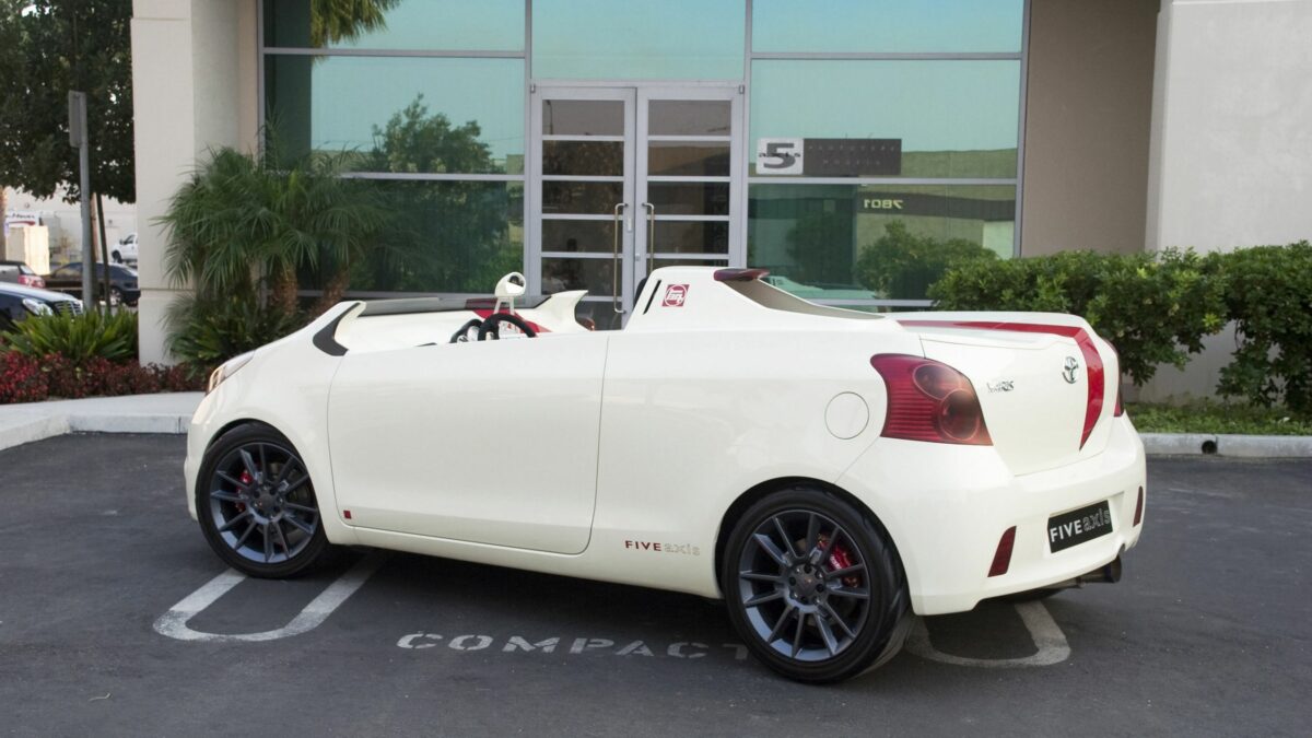 A legjobb autóépítők jól felismerhetők sajátos kézjegyükről. A kaliforniai Five Axis például nem túlzottan kedveli a tetőlemezeket és a szélvédőket, így ha csak teheti, megszabadítja tőlük a gondjaira bízott autókat. Így tettek 2008-ban is, amikor egy szerény Toyota Yarist alakítottak át klasszikus együléses versenyautó stílusban. Szerencsére a belbecsre is gondoltak: a motor teljesítményét kompresszorral és módosított kipufogórendszerrel emelték meg, a futóművet 50 milliméterrel leültették, és hatalmas fékeket szereltek az autó alá.
