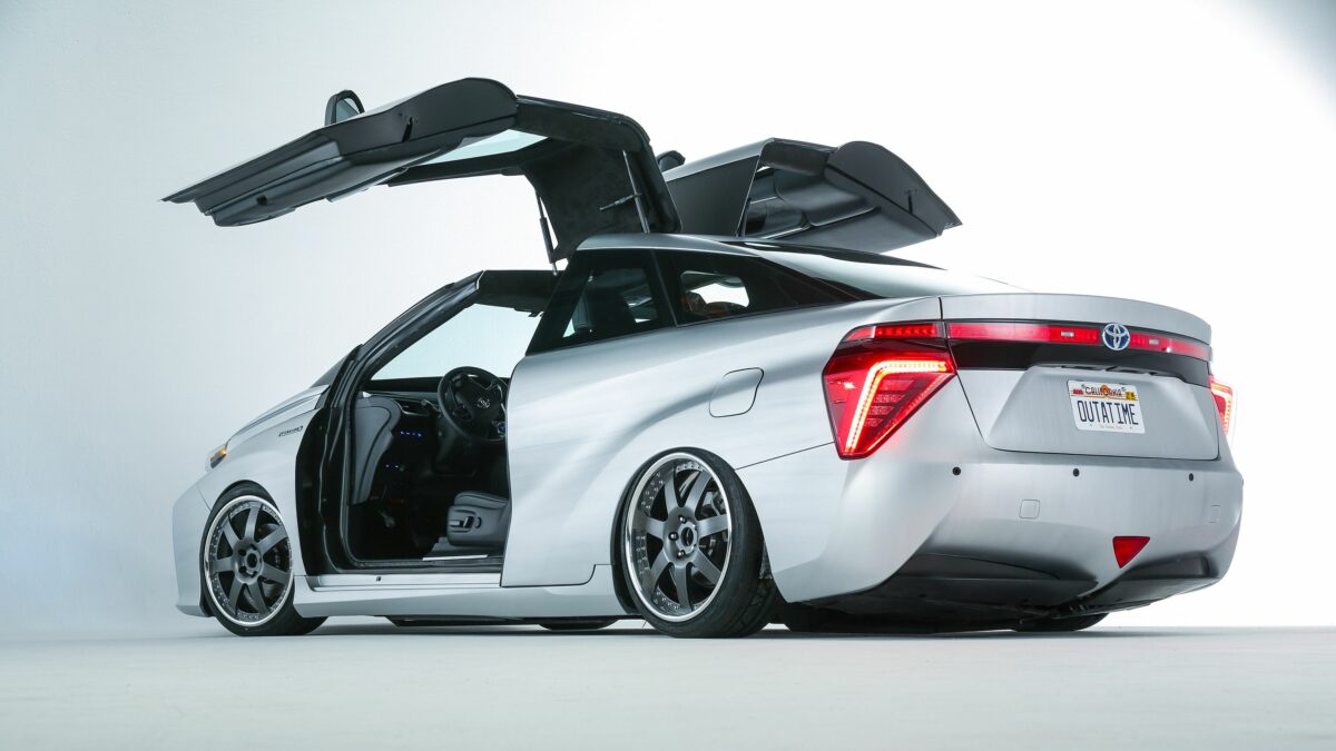 Kiváló játék ma már az autógyártók számára is a SEMA Show, a jövőt jelentő Toyota Mirai a Vissza a jövőbe DeLoreanjának stílusában debütált 2015-ben