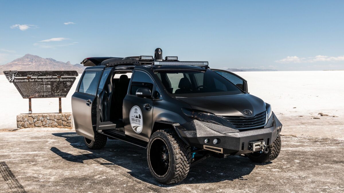 A buszlimuzinok tágasak és praktikusak, de kíméletlen terepre, expedíciós célra a terepjárók alkalmasabbak, még ha a belső terük nem is olyan jól variálható. A megoldást a Toyota találta ki: a Sienna egyterű karosszériáját rászerelték a Tacoma 4x4-es pickup robusztus alvázára. Elképesztő rugóutakkal (400 mm), offroad abroncsokkal szerelték fel, és már indulhatott is a vadonba, mint a Toyota 26 ezer kilométeres expedíciójának kísérő autója és kommunikációs központja. Mellesleg ezzel a kivitellel családi kirándulásra is ideálisnak tűnik.