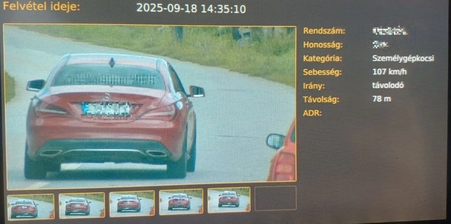 A Pásztói Rendőrkapitányság forgalom-ellenőrző munkatársai szeptember 18-án délután álltak ki a háromlábbal, és kiszűrték a forgalomból azt a piros Mercedes-Benz CLA-t, amelynek a sofőrje Kálló belterületén a megengedett legnagyobb tempót jelentősen túllépve, az 50 km/h helyett a mérési adat szerint 107 km/órával haladt. A sofőr pénzbírságot és büntetőpontokat is kapott, a jelenlegi bírságtábla alapján 210 ezer forintba került a mutatvány, illetve 6 büntetőponttal is közelebb került a jogosítványa elvesztéséhez.