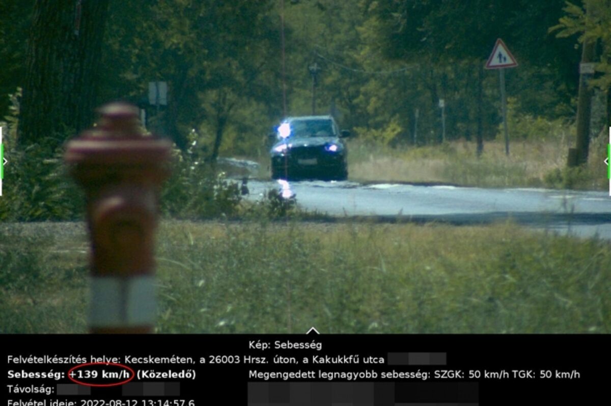 Íme az egyhetes, fokozott trafizás legdurvább fotója: méretes, fekete szabadidő-autó száguld lakott területen belül 139 km/órával. Természetesen őt is megállították a sztárfotó elkészülte után a rendőrök, a helyszínen felelősségre is vonták a száguldozót.