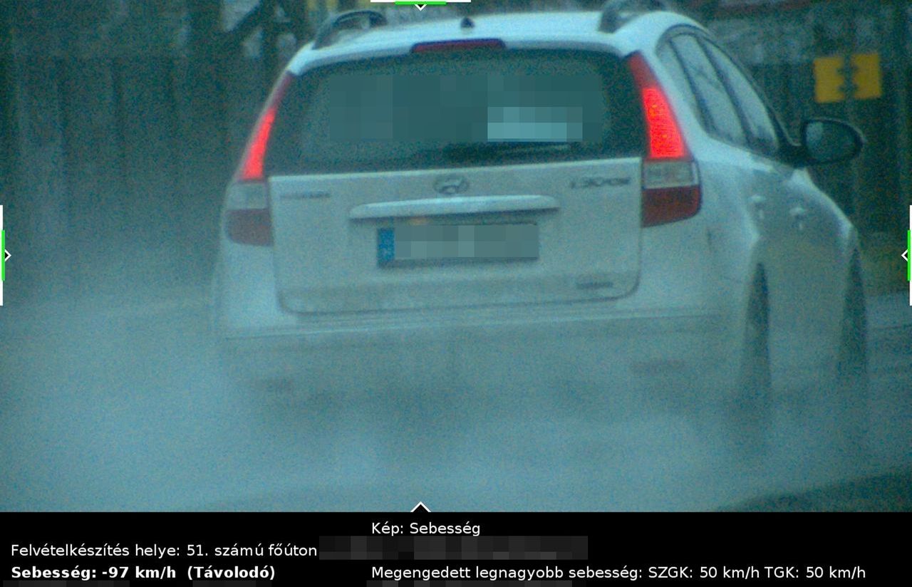 A Hyundai bár messze elmaradt a Honda sebességétől, mégis valószínűleg nagyobb bírságot kapott, hiszen arányaiban súlyosabb gyorshajtást követett el (fotó:Police.hu)