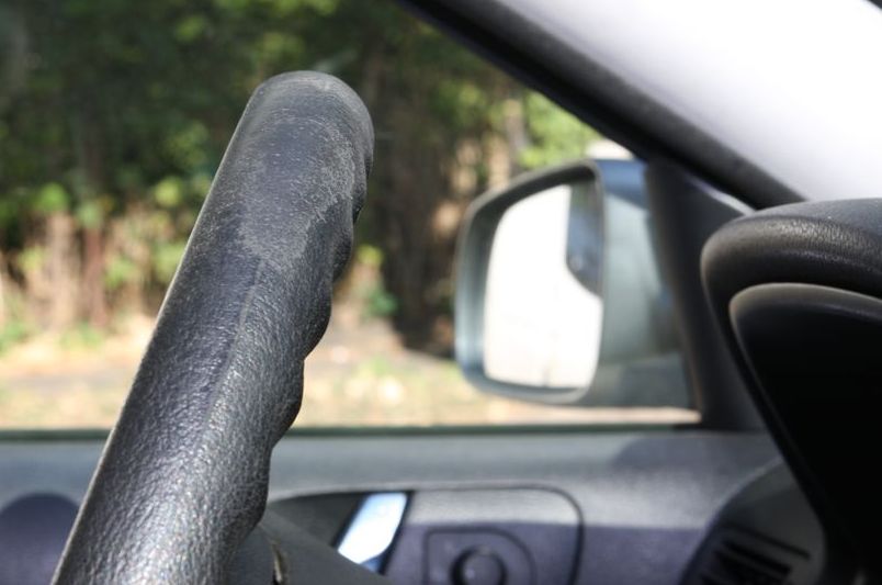 Nem csak kifényesedett, mállani is kezdett az ötéves, nem egész 120 ezer kilométert futott Octavia plasztik-kormánya, ezért került sor volánjának bőrözésére