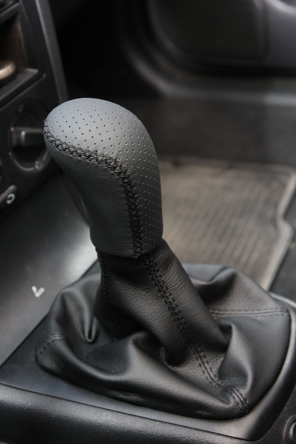 A szoknya elkészítésekor könnyítés, ha a váltó körül gyárilag is szoknya és nem gumi-harmonika van. Ma már a legtöbb autó ilyen, az 5 éves Octaviánál sem volt más teendő, mint a gyári szétszedése, az egy-egy helyen sérült eredeti bőrrészek alapján az újak kivágása, majd azok összevarrása és visszaszerelése.