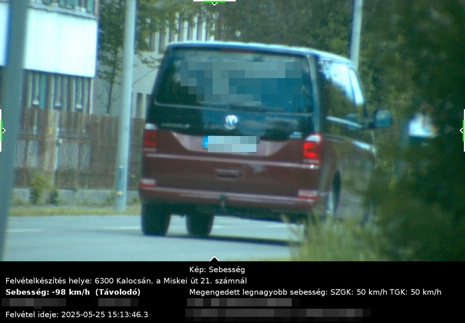 Egyetlen hét leforgása alatt 1710 esetben rögzítettek gyorshajtást a rendőrök Bács-Kiskun vármegyében. Ezekből három traffipax felvételt a hatóság közzé is tett a weboldalán. Az egyiken egy Suzuki Vitara látható, amint a 90 km/órás korlátozás ellenére 152 km/órával húz el a mérőműszer előtt. Ugyanezen a szakaszon - csupán néhány órával később - egy Mercedes vezetőjét is lefotózták, ám a német prémium sofőrje már 161 km/órával haladt el a háromlábú előtt. Kalocsa belterületén pedig az 50 km/órás korlátozást figyelmen kívül hagyó Volkswagen kisbusz vezetőjét mérték be 98 km/órával. A Police.hu tájékoztatása szerint mindhárom esetben 140 ezer forintos csekket küldenek majd a hatóságok az illetékeseknek.