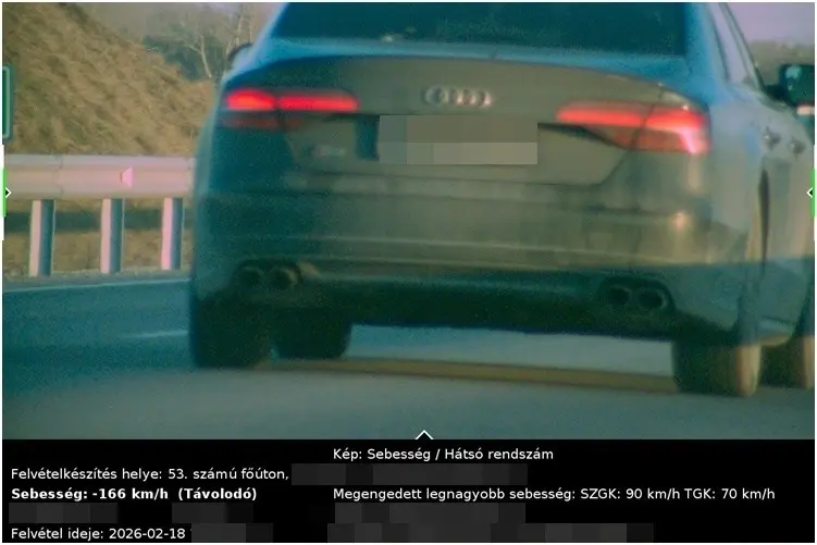 A leggyorsabb száguldozó egy fekete Audit vezetett, és a megengedett 90 km/h helyett 166 km/órával suhant el egy traffipax előtt. A Passat üzemben tartója egy 100 ezer forintos csekkre számíthat a postaládájában, míg a Touareg és az Audi vezetője fejenként 210 ezer forinttal kell, hogy megtámogassák az államkasszát a felelőtlen döntésük miatt.