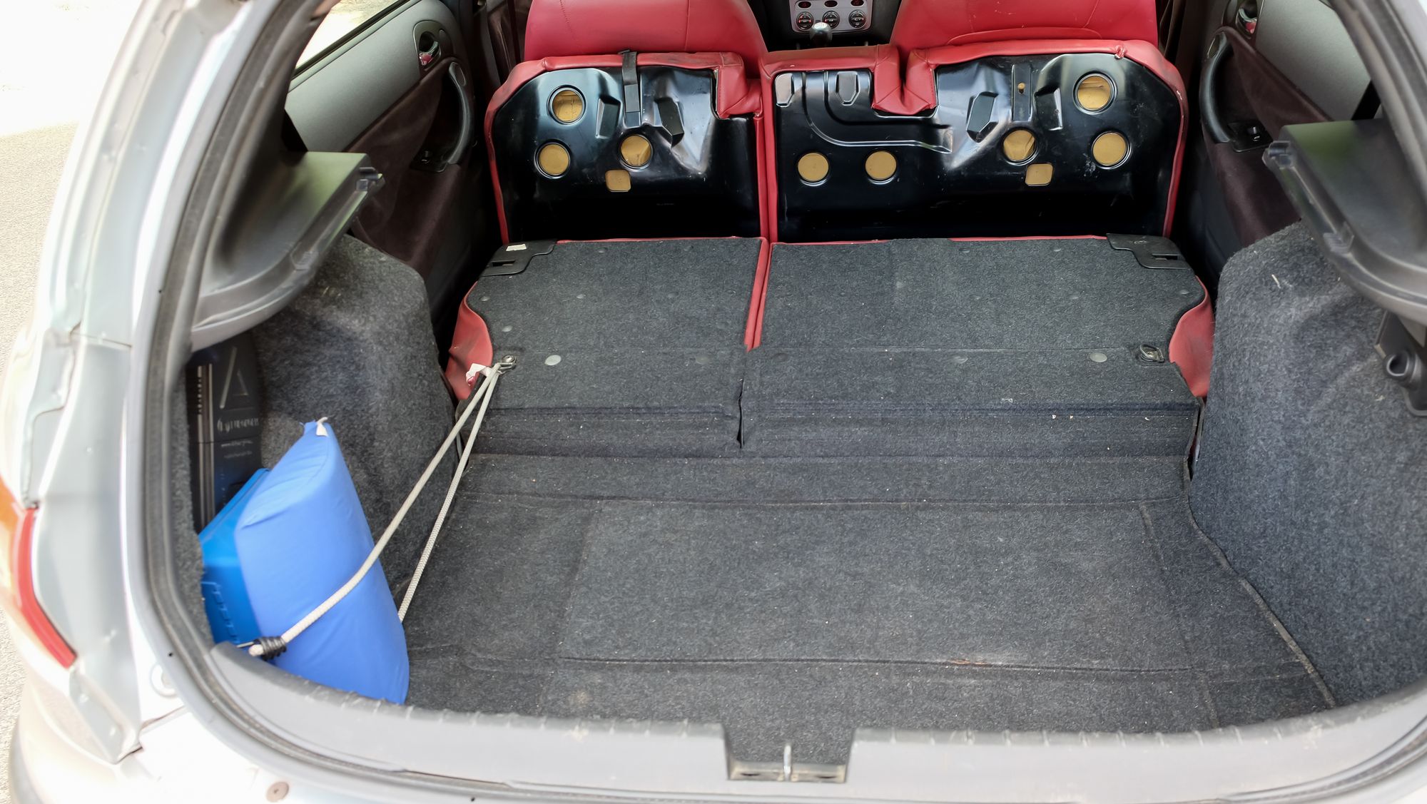 Az ülőlapok felhajthatósága és a támlák ledöntése által sík padlós, egész nagy rakteret kapunk, alul pedig szükségpótkereket is
