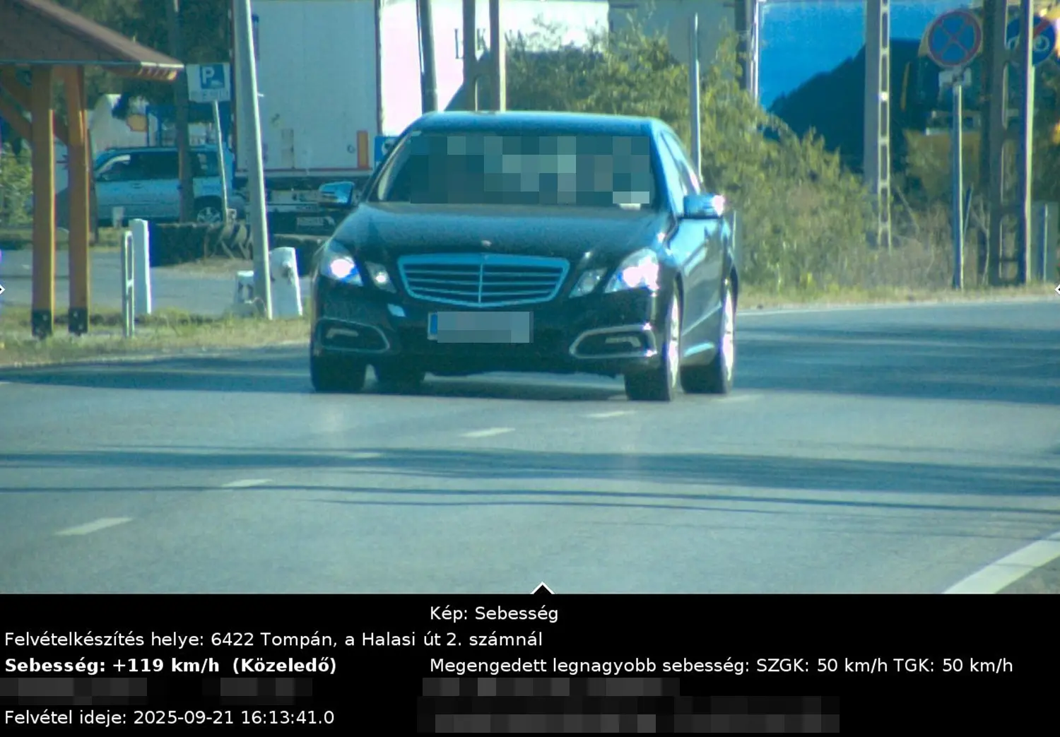 Az elmúlt héten a megengedett sebességhatárokat regisztráltan 2333-an lépték át Bács-Kiskun vármegyében. A szabálytalankodóknak legalább 50 ezer forint közigazgatási bÃrságot kell fizetniük, a kiszabható büntetés összegének maximuma pedig 468 ezer forint a jelenlegi bÃrságtábla szerint. ez azonban aligha jelent visszatartó erÅ‘t egyeseknek: Tompán például 50 helyett 119 km/órával közlekedÅ‘ E-osztályról készült 312 ezer forintos fotó. Az 53-as számú főúton pedig több extrém gyorshajtót is lencsevégre kaptak az egyenruhások: egy Tesla vezetÅ‘je 90 helyett 170 km/órával száguldott, ez a mutatvány 210 ezer forintba került.