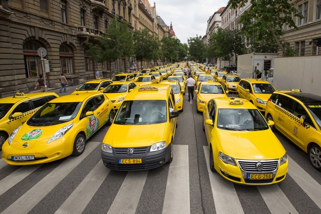 A budapesti taxisok főbb csomópontokat bénítottak meg Uber ellenes tüntetésükkel Budapesten. Többek között a Deák tér környékét és a reptéri gyorsforgalmi utat is