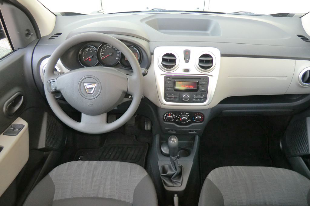 A 4498 mm hosszú, 1751 mm széles és 1680 mm magas, óriási, 2810 mm-es tengelytávú, a Reanult Grand Scénicnél külméreteivel alig kisebb, de természetesen puritánabb kivitelű egyterű a Dacia eddigi legigényesebb autója. Noha utastéri műanyagkárpitjai továbbra is kivétel nélkül kemények, műszerfalát króm vagy akár zongoralakk hatású középkonzol, világos betét, krómgyűrűs légbeömlő, USB-csatlakozós gyári hifi, de még érintőképernyős navigáció is színesítheti. Utóbbi szó szerint, hiszen a 7 colos kijelző színes, s igazi örömhír, hogy az LG hardware nem TomTom, hanem magyar fejlesztésű iGO szoftvert kap.