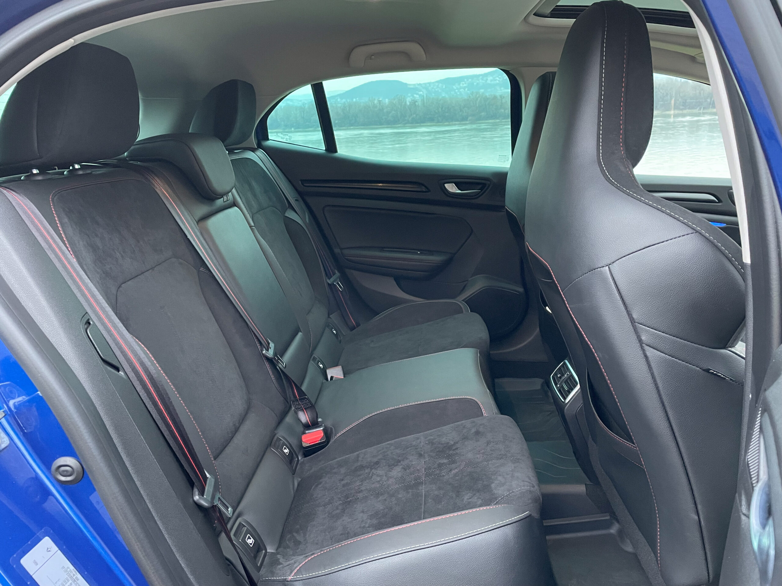 Pláne korrekt érték úgy, hogy ezt az akkumulátort úgy építették a Megane-ba, hogy sem az utastér, sem a csomagtér mérete nem csökkent. Oké, a csomagtér padlórekesze azért igen, de ha nincs az autóban Bose hifi és vele mélynyomó, akkor azért a töltőkábeleket pont betehetjük a "pincébe". Itt megvan a mélynyomó, ezért a kábeleknek a 308 literes hasznos térből kell helyet szorítani. Ennél több kompromisszum azonban nincs. Sőt, a Megane E-Tech Plug-in Hybrid a konnektoros autók körében kifejezetten jól vezethető. 158 lóerős rendszerteljesítménye és 349 Nm nyomatéka, valamint 9,8 másodperces 100-as sprintje a dinamikusabb autók közé emeli, ehhez pedig jól passzol az R.S. Line sportülése és a 18 colos felnikkel igen stabil, de meglepően jó csillapítást is adó futóműve.