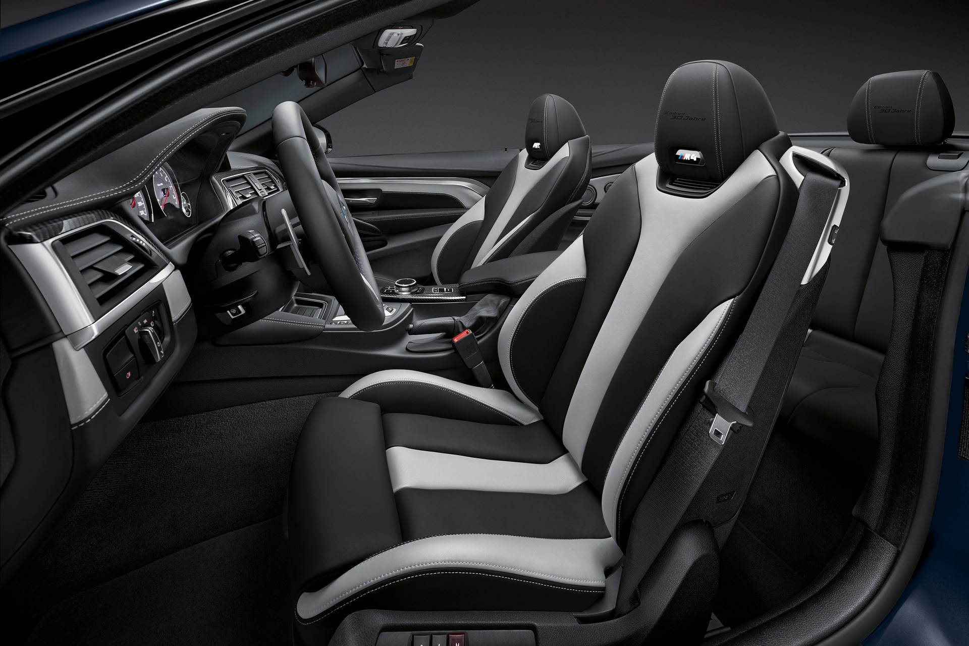 Többféle összeállításban érhető el, ám fényezésből csak kettő van: Macao kék és egy Mandarin sárga, mindkettő rendkívül látványos. A fényezést extra magasfényű fekete elemekkel egészítik ki, a vesék, az oldalsó levegőkilépők és az M4 plakettek mind az Individual részleg Shadow Line csomagjából érkeznek. A külsőhöz passzoló utastér is elérhető, a kétféle színből összeállított üléskárpitok mellett karbon elemeket találunk az utastérben, valamint a műszerfalon egy kis alumínium táblán a 30 Yahre Edition feliratot és az autó sorszámát. A különkiadás persze a Competiton csomagos M4-en alapszik, így 450 lóerős, futóműve keményebb, kormányzása közvetlenebb, kipufogója hangosabb és sperr differenciálműve is a sportosabb darab.