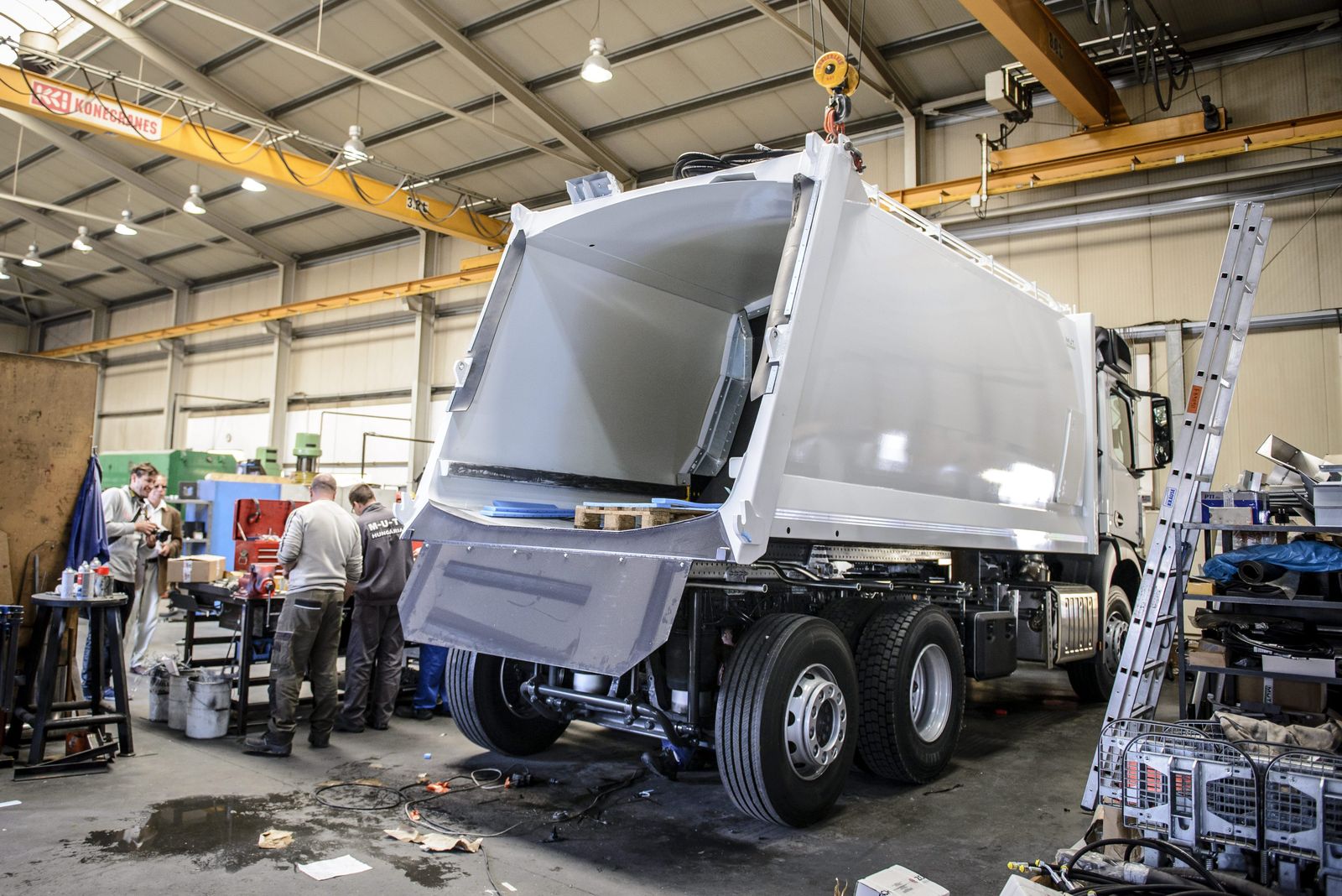 Jámbor László, a M-U-T Hungária Kft. ügyvezetője boldog lehet, egy évben átlagosan 80 kukásautót gyártanak, most 64 példányt vesz tőlük az FKF (Fotó: MTI)