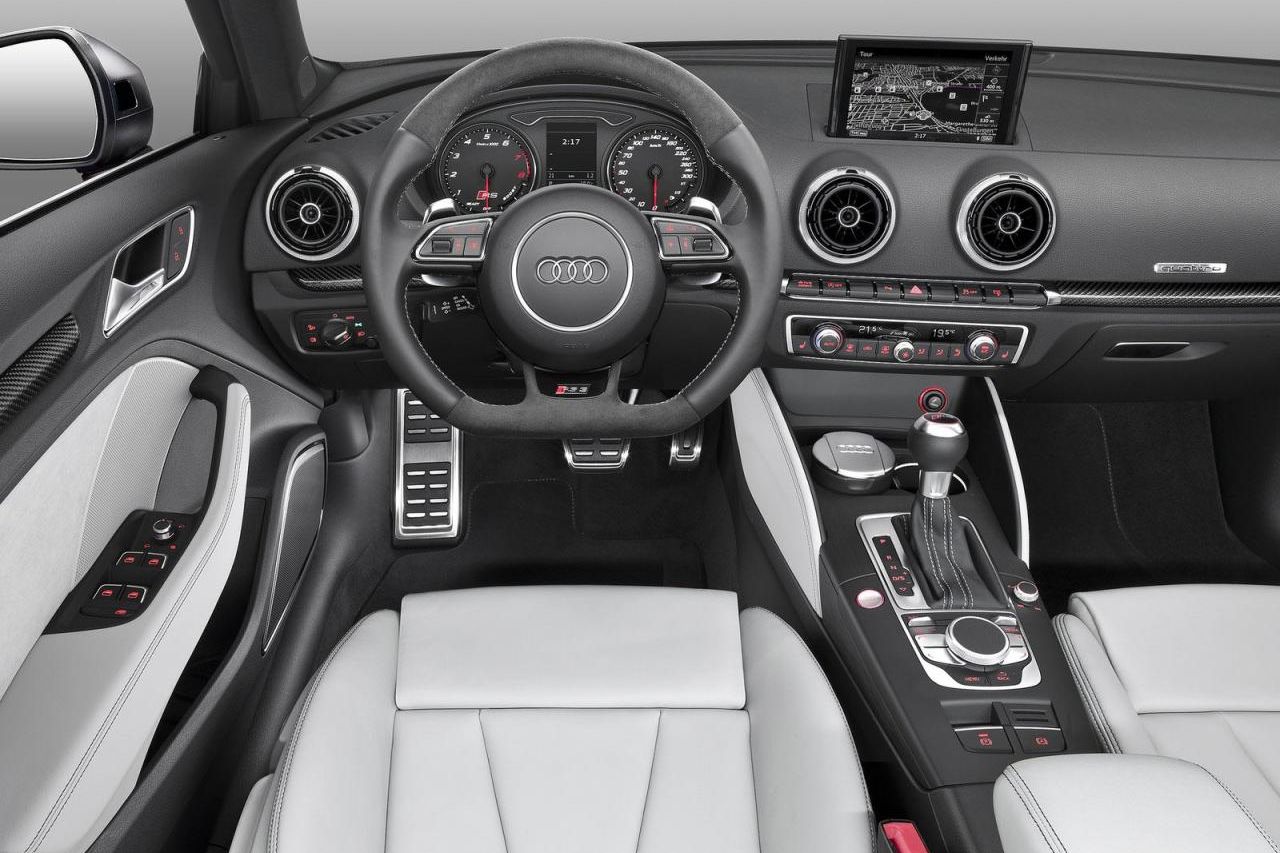 Az autó belsejében Nappa bőrkárpittal ellátott sportülések találhatók. A már jól megszokott alul egyenesen lecsapott, RS3 logóval díszített sportkormány részben alcantara borítást kapott. Rozsdamentes acél pedálok és karbonszálas műszerfalberakások árulkodnak arról, hogy bizony nem egy hétköznapi A3 Sportbackben ülünk. A motorháztető alatt egy 2,5 literes öthengeres turbómotor lapul. A 367 lóerős 465 Nm nyomatékot mozgósító blokk a hétfokozatú S tronic (duplakuplungos) sebességváltóval és a quattro összkerékhajtással 4,3 másodperc alatt gyorsít 0-ról 100 km/órára. A végsebesség elektronikusan 250 km/órában korlátozott, kérésre 280 km/órában lehet maximalizálni.