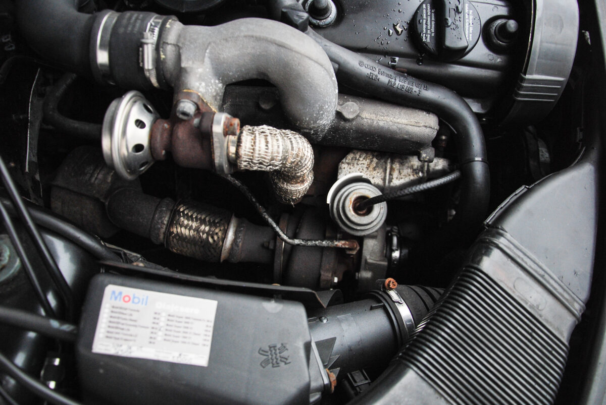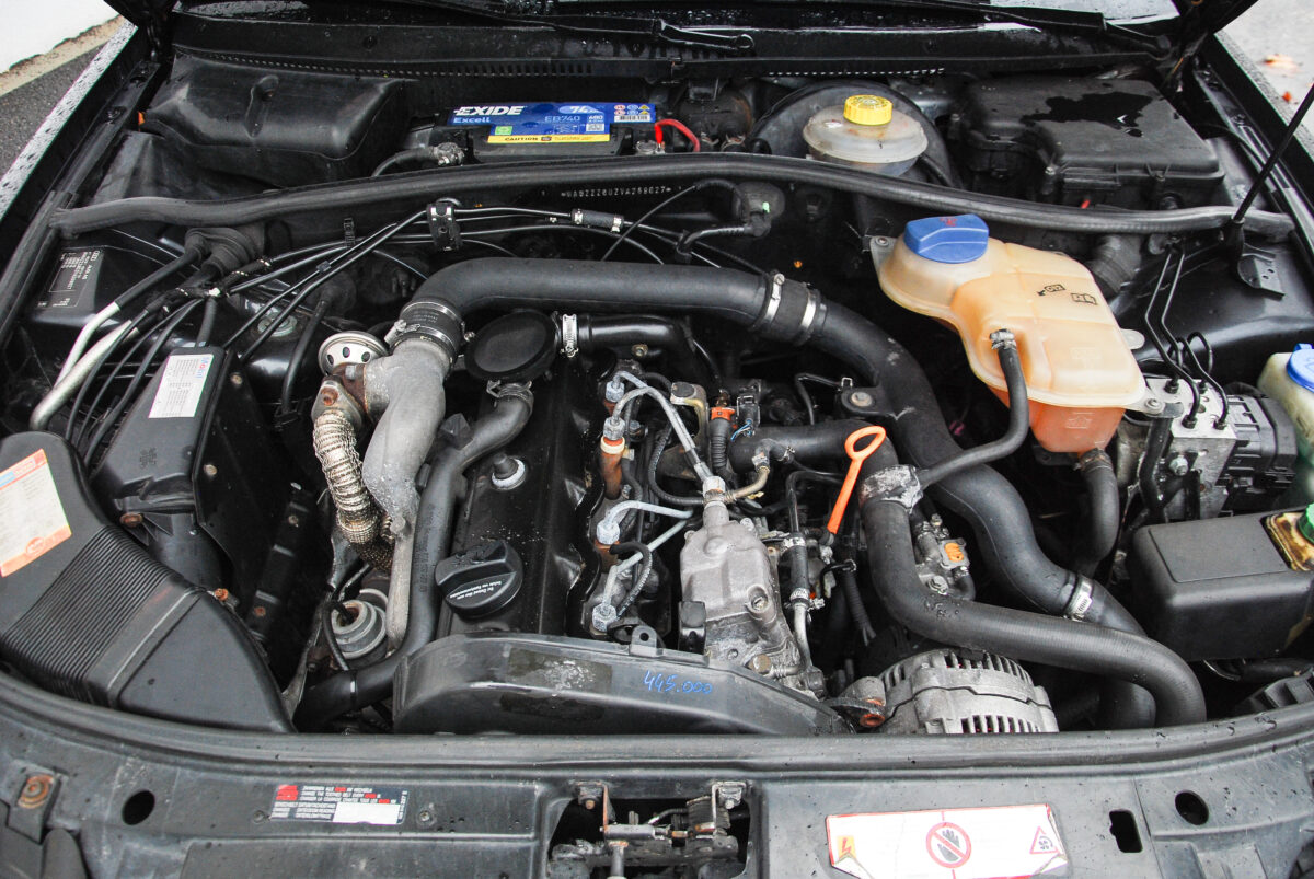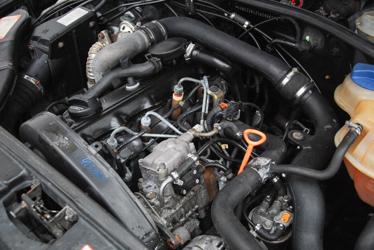 Remek állapotú, olajszivárgástól mentes 1.9 TDI motortér, ritkaságszámba megy, hogy ennyire jól mutasson egy 450 ezer kilométert futott motor a burkolatok alatt
