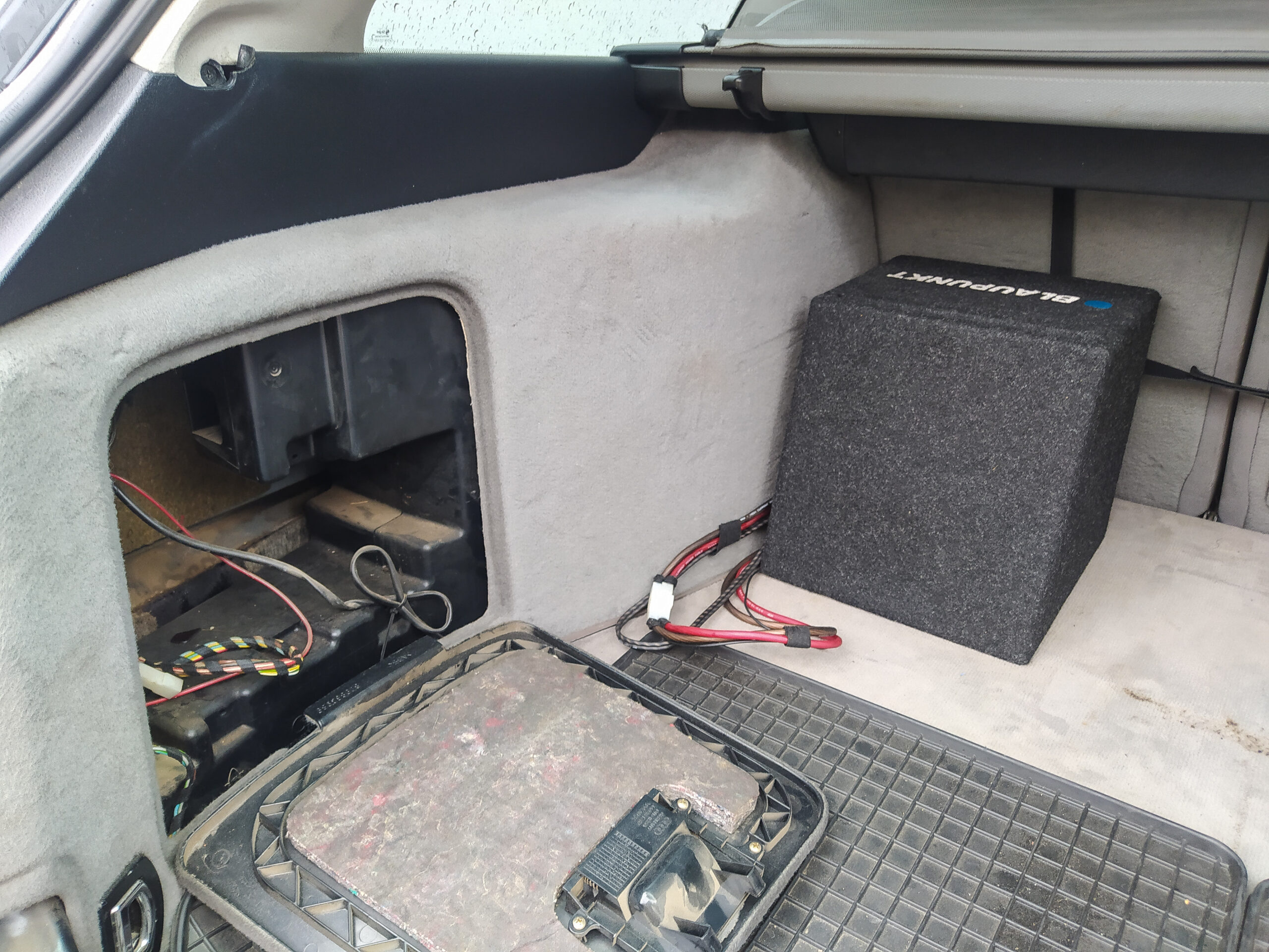 Érdemes benézni a bal oldali kárpitok mögé vásárlás előtt, ott ugyanis szinte mindig gyári mélyláda lapul: ha találsz a kis ajtó mögött sötétszürke dobozt, akkor inkább azt kösd be és újítsd fel, olcsóbb is lesz és szebben is fog szólni, sőt még helyet sem foglal