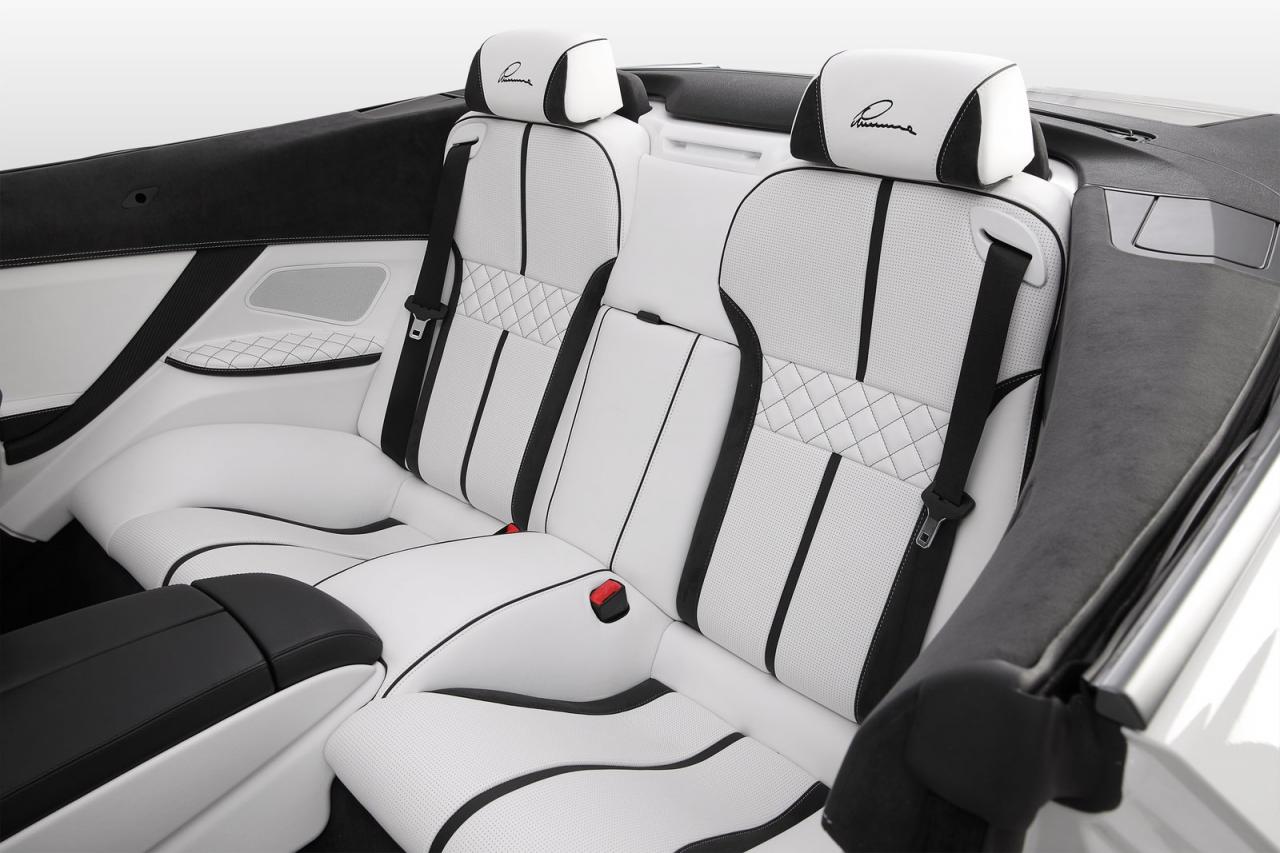 Az utastérben fehér bőr és szürke alcantara kombinációja uralkodik, amit természetesen szorgos kézi varrással illesztettek a műszerfalra, kesztyűtartóra, ajtókra, ülésekre, valamint az ergonomikus kialakítású sportkormányra. Alumínium pedálsor és velúr szőnyegek is kerültek az autóba, amelyhez így már indokolt lenne kis múzeumi mamuszokat is adni, ha valamelyik rendetlen, cipőjét utcán koptató ismerősünket szeretnénk elszállítani benne.