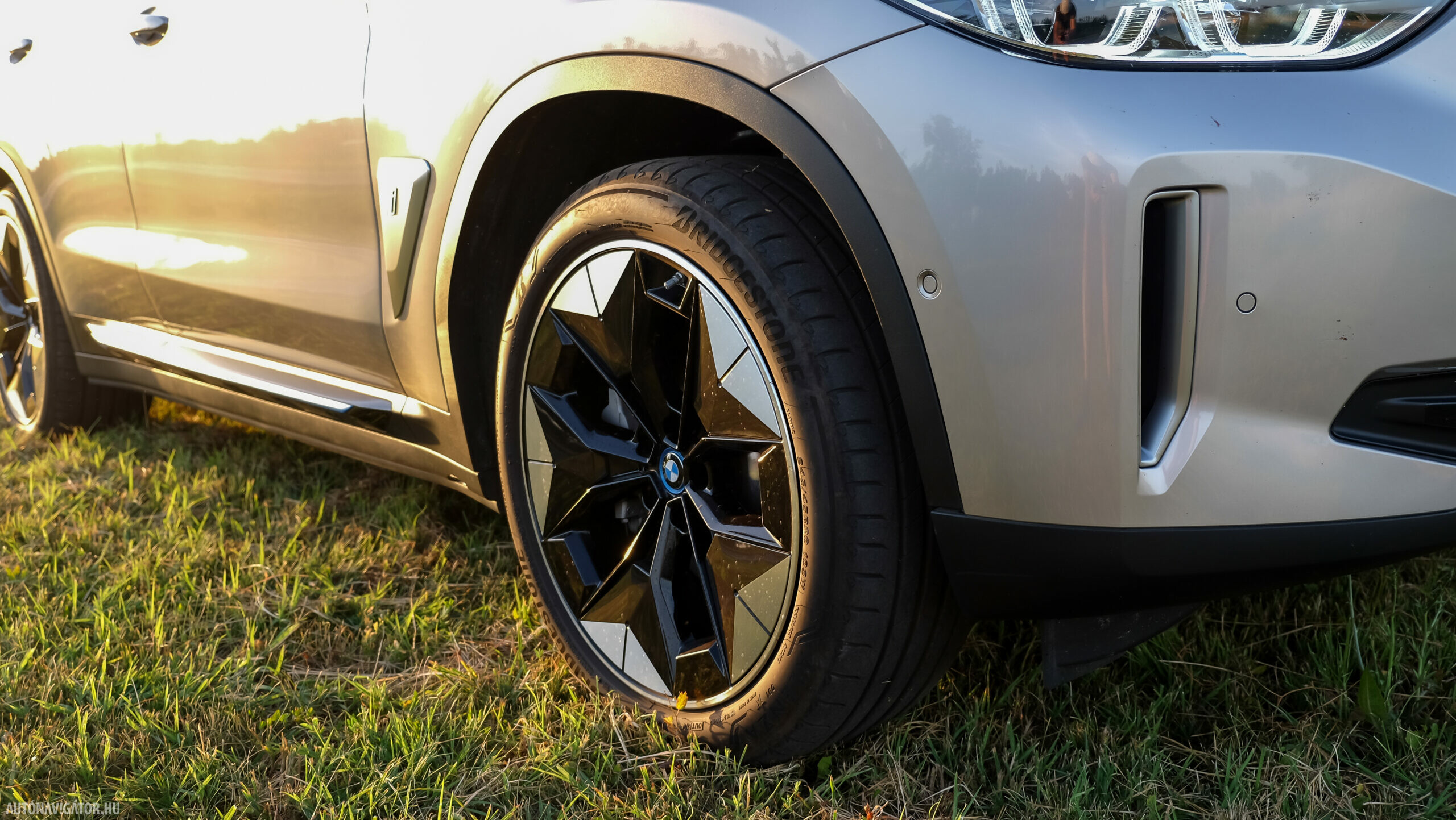 Nem üvöltően villanyautós a tisztán elektromos BMW iX3, a 20 colos, aerodinamikus felnik a gazdagabban felszerelt Impressive kivitel sajátjai, itt már a remek adaptív LED fényszóró is jár
