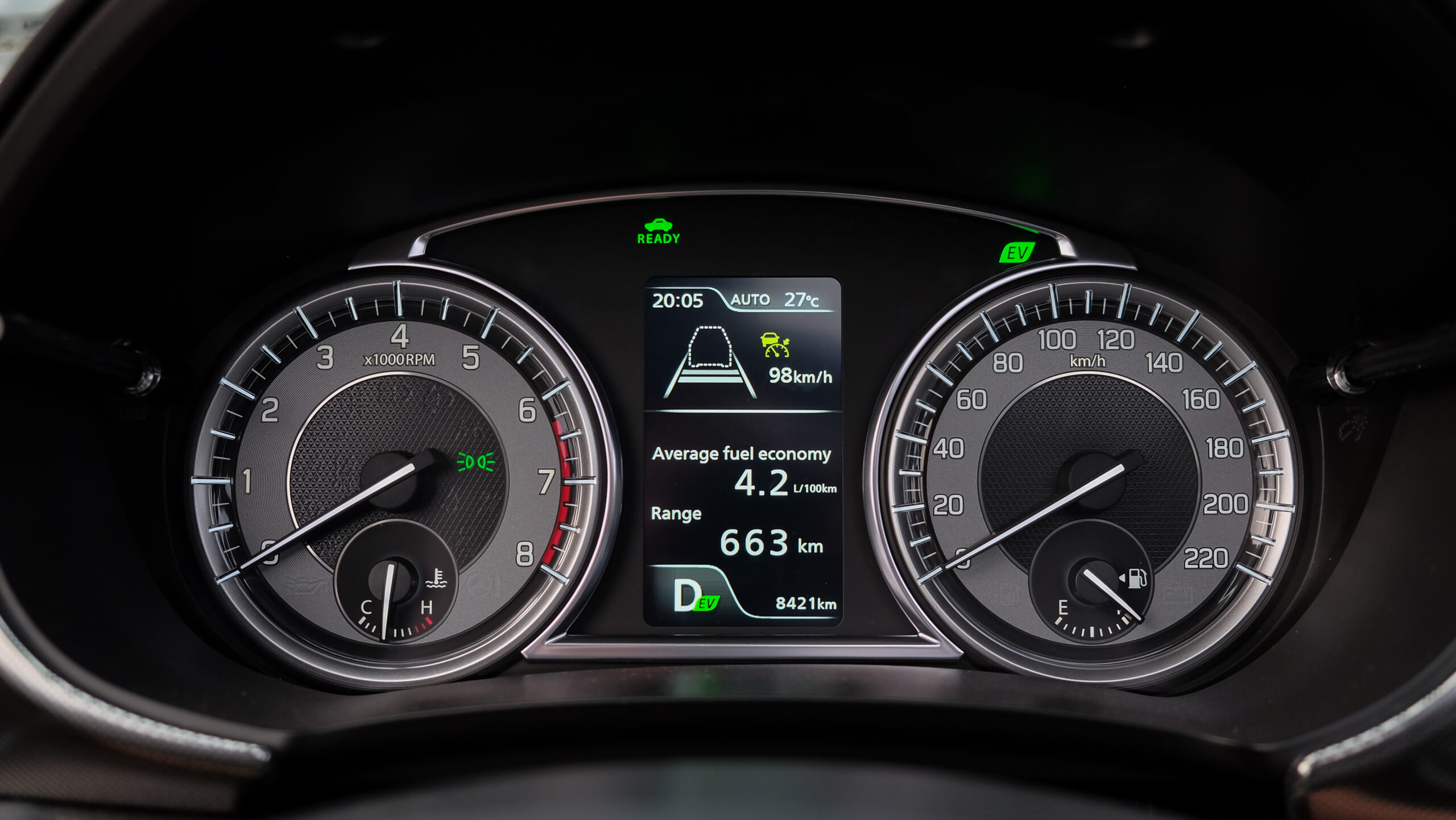 Mi a trükk az alacsony fogyasztáshoz? A trükk az, hogy nincs trükk, ha csak az nem, hogy a lámpákhoz nem gázpedált nyomva sietünk, hanem azt elengedve gurulunk, ilyenkor ugyanis a benzinmotor nem jár, a villanymotor visszatermel, ha pedig szerencsénk van, meg sem kell állni, hanem "repülőrajttal", akár elektromosan gurulhatunk tovább. Ha mégis meg kellett állni, hát sebaj, villanyhajtással, a lassuláskor visszatáplált energiából indulhatunk. Így a Vitara Hybrid nem csak takarékosabb, még finomabb működésű is, mint a most már csakis kézi váltóval elérhető lágy hibrid.