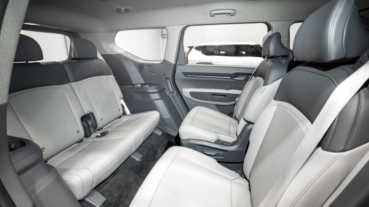 Ami viszont tényleg nagyon durva adat az EV9 esetében, az a méret. A Kia új modellje több mint 5 méter hosszú, 3 méter feletti a tengelytávolsága, közel 2 méter széles és majd' 1,8 méter magas. Mindez természetesen egy nagyon tágas belteret eredményez, a hatszemélyes változat esetében a középső sor ülései akár hátra is fordíthatók, mint egy buszlimuzinban, de természetesen a megszokott módszerrel is kapható, ahol a középső sorban is három ülés kap helyet. Méreteit a 0,28-as alaktényező kompenzálja, amelyet 3D nyomtatott alvázborítással, 19, 20 és 21 colos méretben választható, légellenállásra optimalizált felnikkel és az első lökhárítóba épített aerodinamikai rendszerrel oldottak meg a koreaiak.