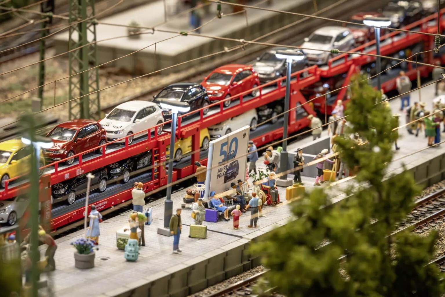 A hamburgi raktárvárosban felépített Miniatur Wunderlandbe a jubileumtól függetlenül is érdemes ellátogatni, ez ugyanis a világ legnagyobb terepasztala. A 12 ezer vasúti kocsi és mozdony 1000 négyzetméteren rója a köröket, a sínek hossza meghaladja a 11 kilométert. Ilyen dimenziók mellett nem csoda, hogy jutott hely egy külön szerelvénynek, amin csak Polók utaznak. A 12 vasúti kocsi 70 apróságot szállít, a legtöbb az ötödik generációt mintázza, de a szemfülesek kiszúrhatják a legelső szériát is.