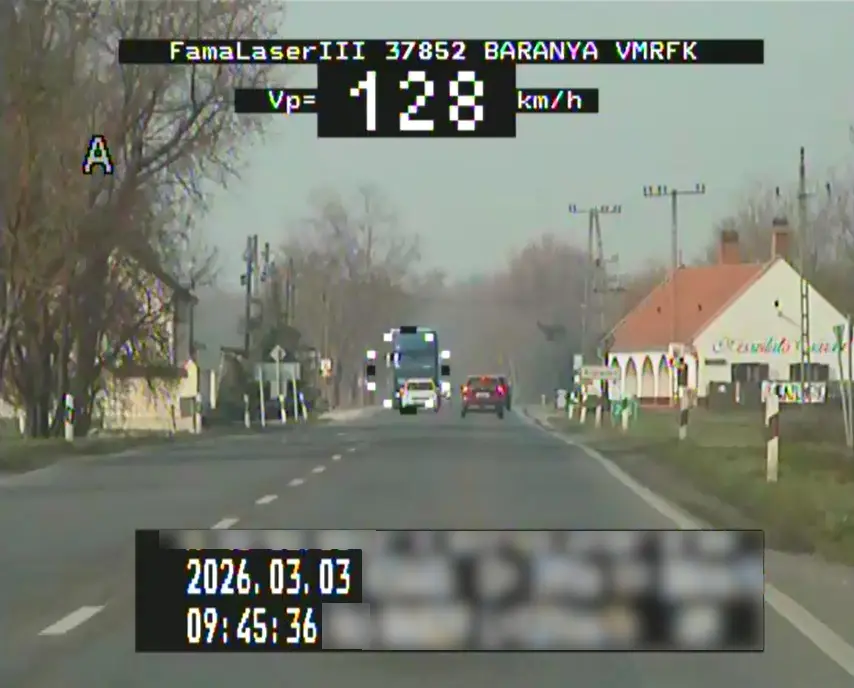 A rendőrök március 3-án, Botykapeterd belterületén mértek be egy autóst, aki egy kamion megelőzését követően a megengedett 50 km/h helyett 128 km/órával száguldott át a településen. Ekkora sebességnél lakott területen belül lehetetlen időben és megfelelően reagálni a külső tényezőkre. 128 km/h sebességnél a féktávolság a szabályos 24 méterről nagyjából 101 méterre nő, amelyből a reakcióidő alatt megtett út 36 méter, a fékút pedig 65 méter. A fizika nem kérdez: szándékosan négyszeresére növelni a féktávolságot mások közvetlen veszélyeztetése. A sofőrt 468 000 forint közigazgatási bírsággal sújtották, amely mellé 8 közlekedési előéleti pont is járt a rendőrség közleménye szerint.