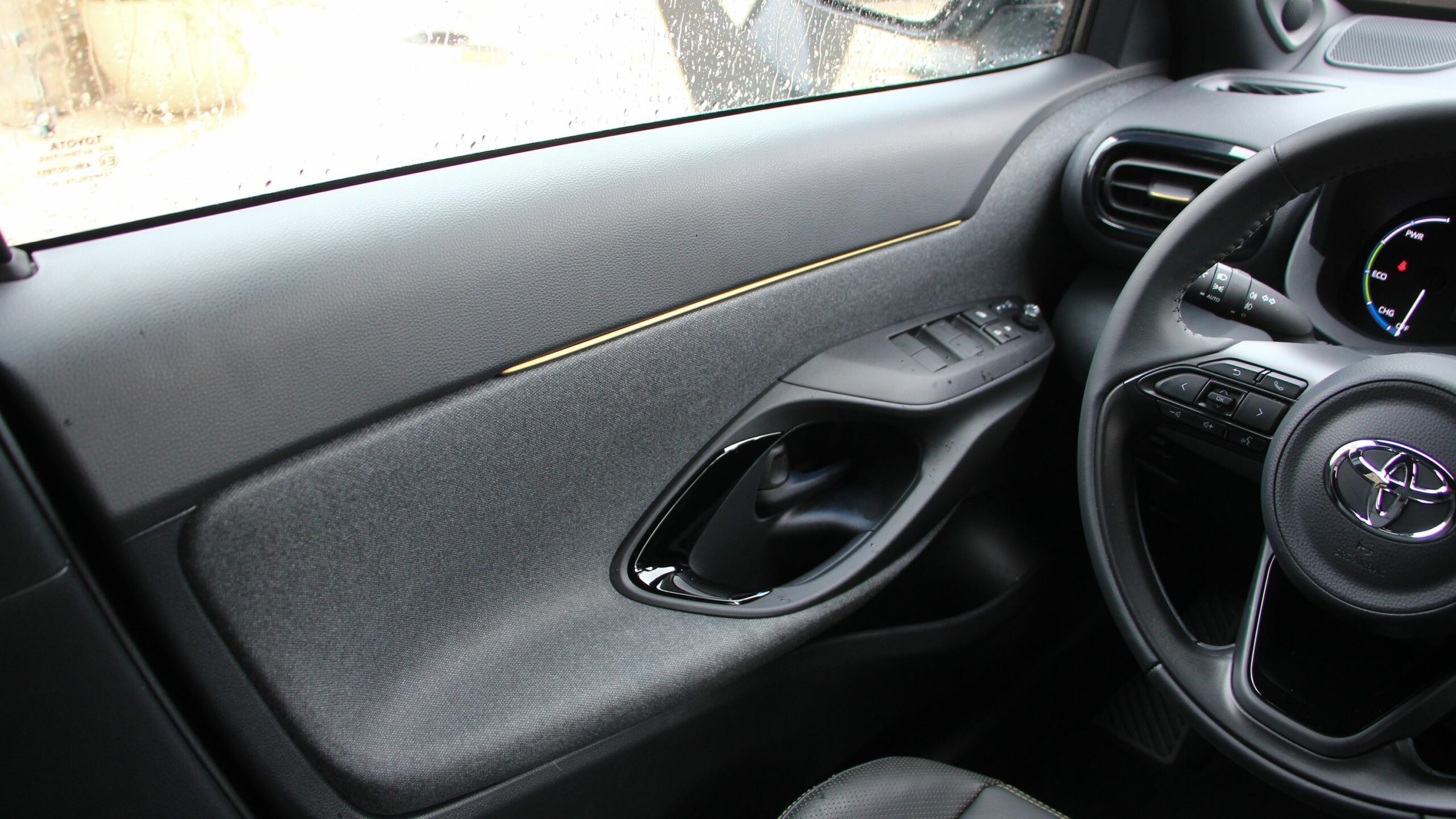 Yaris belső azért nem hoz túl magas szintet, hiába hibrid, 8,5ért már fájhat a japán kisautó színvonal.