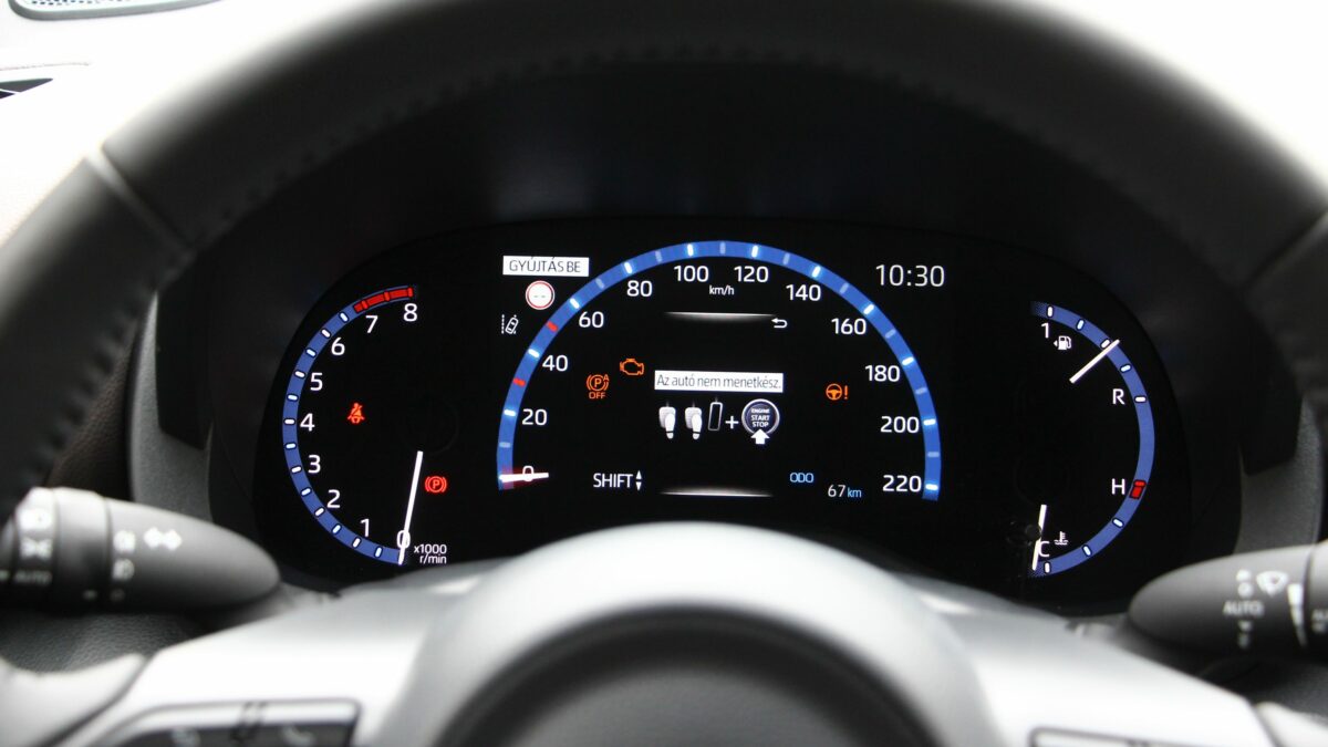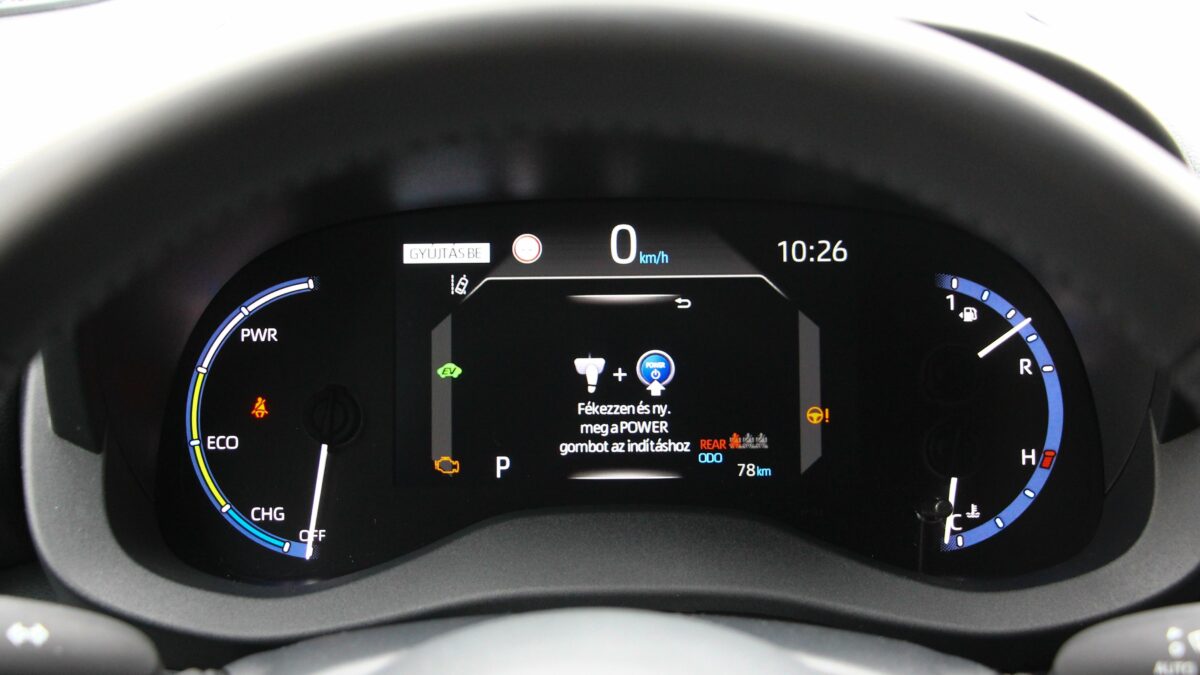 Dicséretes, hogy lefordították a műszeregységet (ezt ki kell emelni), de azért valljuk be – a napokban tesztelt Mokka milliószor trendibb. Ahhoz képest, hogy „nem unalmas” akar lenni a szokásos Toyota színskálától valahogy nem sikerült elszakadni, egy fehér tető ma már kevés ebben a kategóriában az egyediséghez. A Yaris legalább létezik tűzoltópirosban és még a Corollánál is volt induláskor egy szép strandkorlát-kék szín, amit mondjuk úgy tűnik el is kaszáltak azóta, csak az első PR anyagokba kellett valami izgalmasabb, a szalonban már infarktust okozna a Toyota-vevőkörnek.