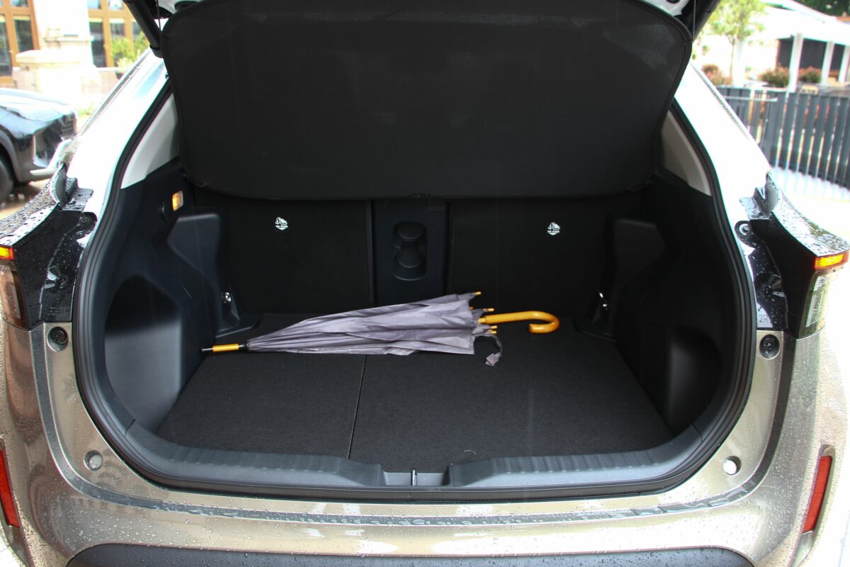 A csomagtér alaphelyzetben 390 literes, a hátsó üléssor 40/20/40 arányban, az állítható csomagtérpadló pedig 60/40 arányban osztható. A csomagok csúszkálását akasztók és állítható hevederek akadályozzák meg, és a Yaris Cross felszereltségi listáján kézhasználat nélkül nyitható csomagtérajtó is szerepel. Ráadásul a hagyományos Toyota szabadidő-autókhoz képest majdnem kétszer gyorsabban nyílik és záródik a csomagtér ajtaja, emellett okostelefon-kulcs is létezik hozzá, ami automatikusan nyitja és zárja a csomagtartó ajtaját, ha meglendítjük a lábunkat a hátsó lökhárító alatt. Ez a megoldás most először jelenik meg egy kompakt Toyota SUV-ban.