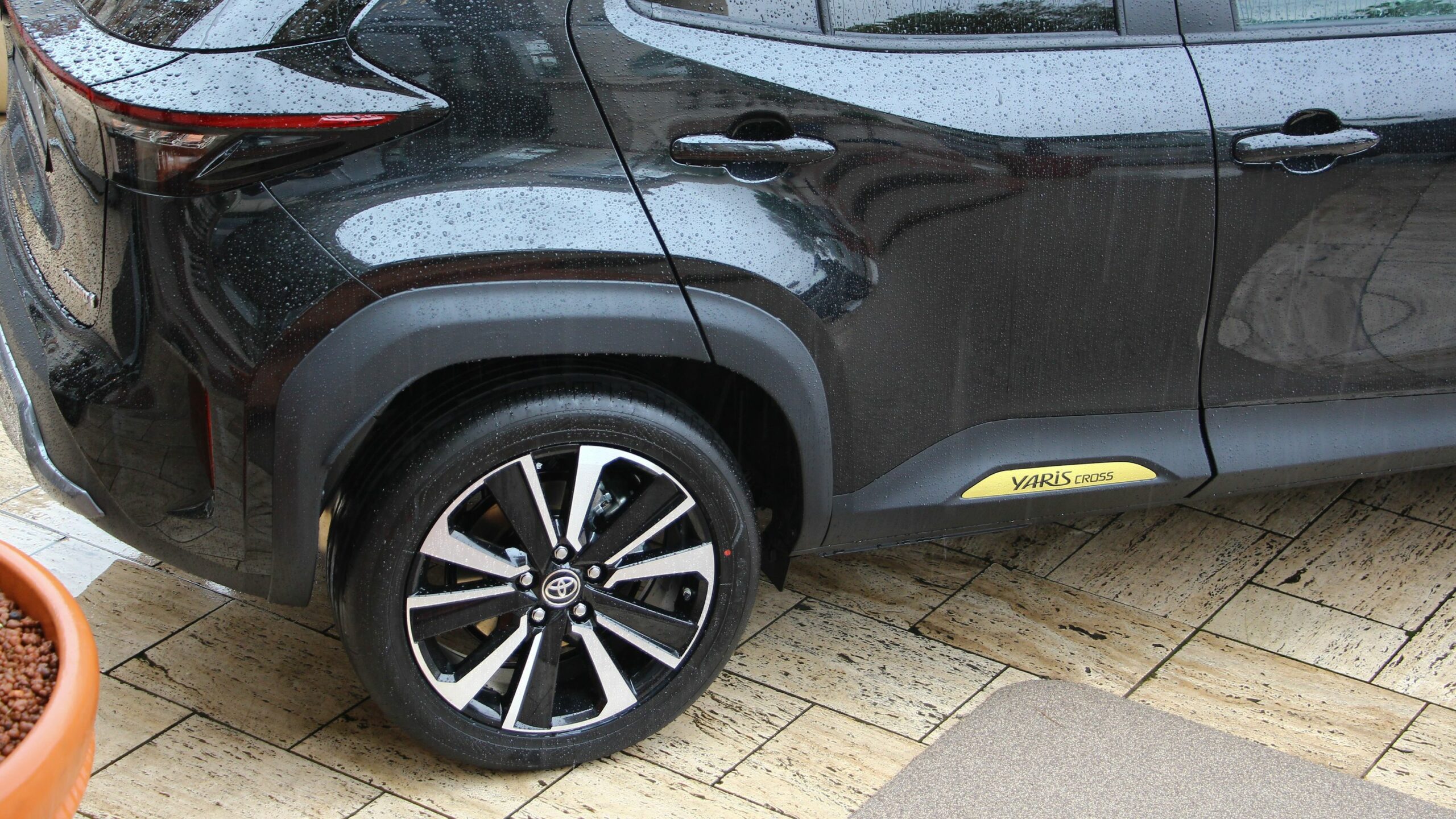 Az oldalvédő elemeken – az autó fényezésétől függően – ezüstszínű vagy Warm Gold árnyalatú Yaris Cross betét látható