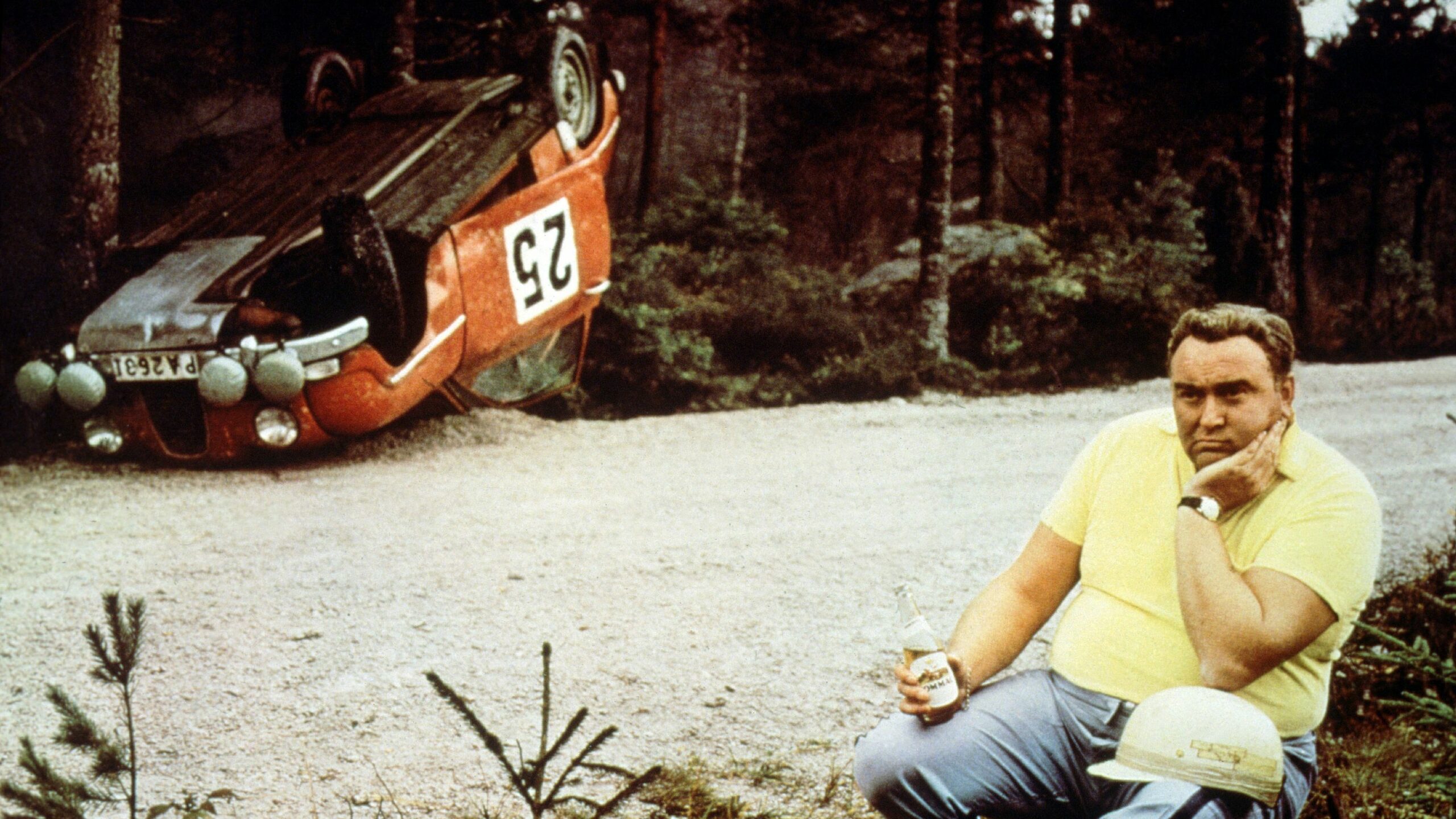 Na, de tudom sokakban felmerülhetett még egy kérdés a végén. Ki a fene az az Erik Carlsson? Hát egy versenyző. Méghozzá egy raliversenyző. Ahogy az ma is jól megszokott, a gyártók szívesen választanak egy-egy nevesebb, eredményes versenyzőt a márka arcává. Carlsson is pontosan egy ilyen jó nevű versenyző volt a maga idejében. Nem mellesleg jó kezű és lábú is. Első győzelmét 1955-ben, 26 éves korában aratta egy Saab 92-essel Európa egyik legkeményebb versenyén a Rikspokalen nevű ralin. Híres ballábfékes technikáját is azért fejlesztette ki, hogy a kis teljesítményű, kétütemű motort mindig a megfelelő fordulaton tarthassa. Az 1962-es és az 1963-as Monte-Carlo ralin mar a 96-ossal indult, meg is nyerte mind a két évben, óriási hírverést csapva a Saab számára. Azonban az alábbi kép talán a leghíresebb róla, ami egyben az autósport egyik legmenőbb momentuma is. A képre nézve azonnal világossá válik miért emlegetik csak úgy a versenyzőt, hogy Carlsson a tetőn, ami tökéletesen rímel egy svéd mesehős nevére - Karlsson pa taket – ami szintén azt jelenti: Karlsson a tetőn.