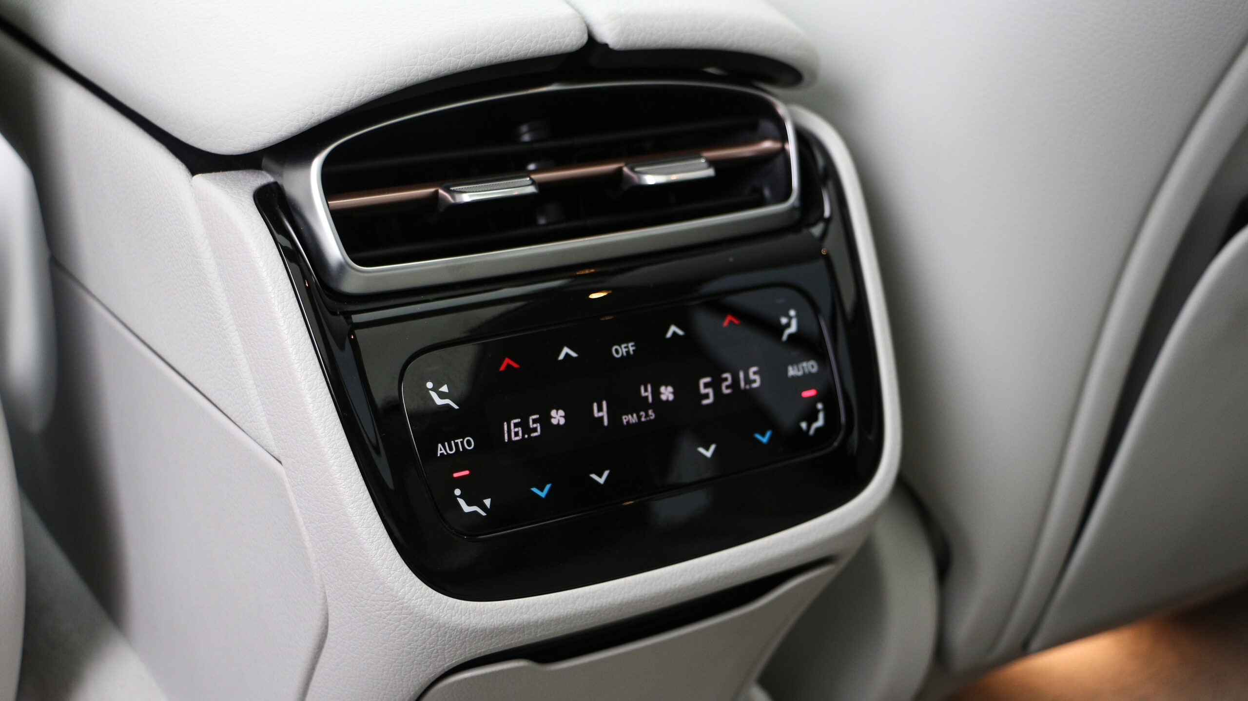 Hátul (felárért) két extra klímazónát rejt a középkonzol vége, de a pohártartós könyöklő alapáron sem maradhat el az EQE második sorából