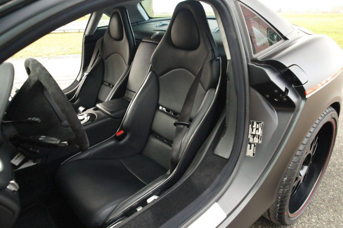 A nevesebb tuning műhelyeket általában nem szokta zavarni, ha egy-egy típus már nem érhető el kereskedelmi forgalomban, az exkluzív modellekhez utólag is gond nélkül hozzányúlnak. Most így tett az Edo Competition, amely az SLS AMG korszak előtti Mercedes-Benz szuperjárgányt vette kezelésbe. A végeredmény, a 722 azonban megtévesztő. A McLaren céggel közösen fejlesztett SLR ezüstnyíl gyárilag is létezett különkiadásban 722-es jelzéssel, és hogy ez a szám pontosan mit jelent, annak történetét ide kattintva elolvashatják. Az átalakított modell karosszériáját matt fekete fóliával borították be, és a piros oldalsó díszítés mellett hatalmas számokat is tettek rá - nem véletlenül. Az 5,5 literes, kompresszoros, gyárilag 650 lóerős V8-as az Edo Competition hathatós kezelése után 722 lóerővel és 890 Nm forgatónyomatékkal büszkélkedhet, amely erőcsomaggal 3,4 másodperc alatt képes álló helyzetből 100 km/órára gyorsítani. A 21 colos kerekeken száguldó fenevad végsebességét elektronika szabályozza 345 km/órára, és a sportautóknál álomhatárnak jelentő 300-as határ átlépéséhez csupán 24,5 másodpercre van szükség.
