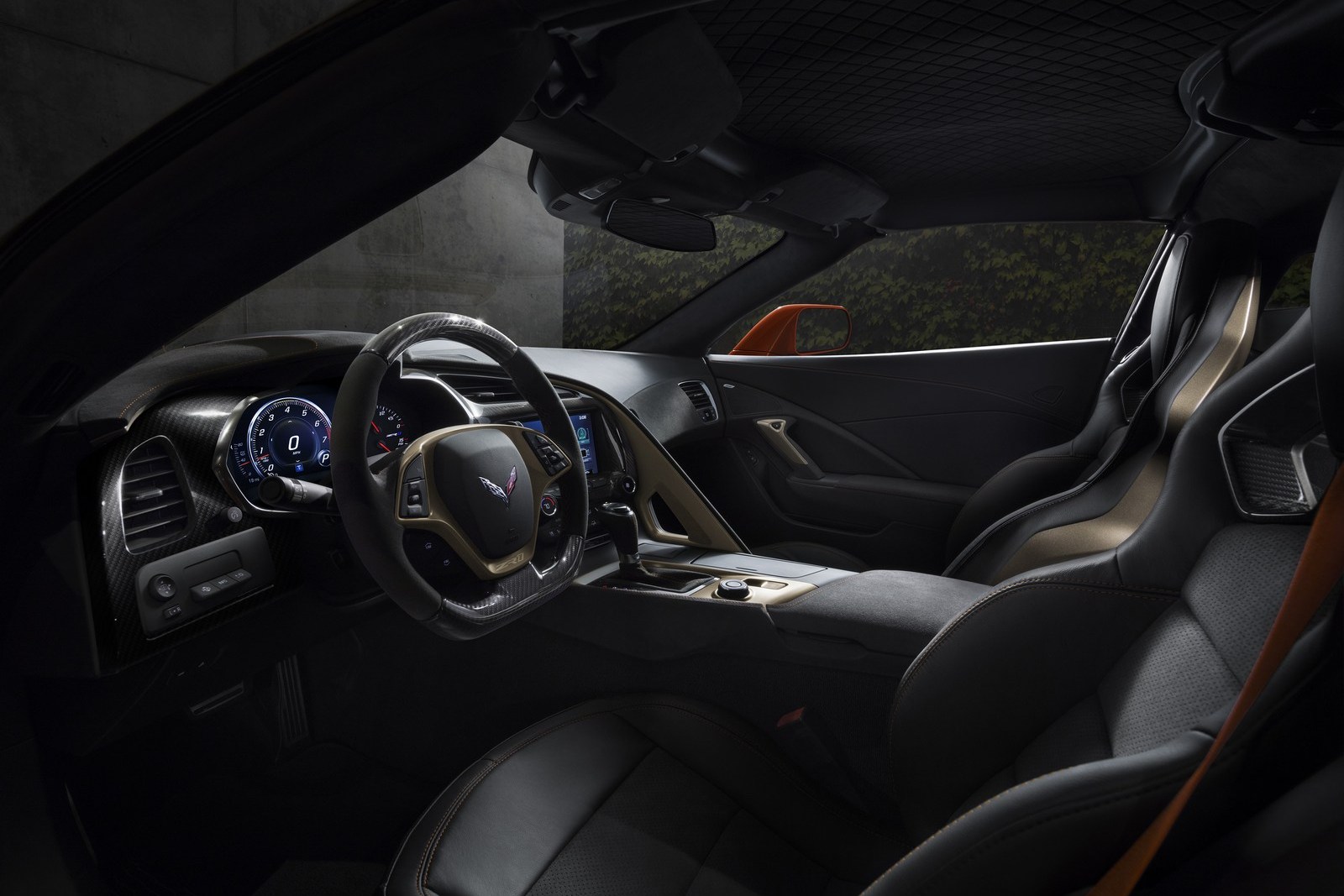 Különleges színcsomagot is kínálnak a Corvette ZR1-hez, a Sebring Orange Design szettben a nevét adó szép fényezés, narancs féknyergek és apró kiegészítők szerepelnek. Bent ilyenkor nem túl élénk narancs varrásokkal találkozunk, valamint bronzszínű matt alumínium kiegészítőkkel is. Bent ezen túl lehetnek fűtöttek és szellőztethetőek a Napa bőrbevonatú ülések, karbon berakású lehet a kormány a feláras prémium hifit pedig a Bose szállítja.