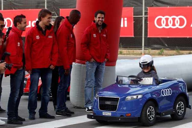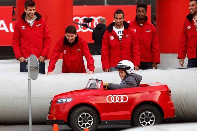 Nem sokkal azután, hogy a Real Madrid játékosai megkapták legújabb szponzorautóikat, a nagy rivális Barcelona sztárjai is hivatalosak voltak egy Audi-szeánszra. Míg Ronaldóék bónuszprogramként versenyautóztak is, Messiék gyerekek négykarikás kocsizásának és KRESZ-oktatásának tapsoltak, aláírásokat osztottak, s például azzal viccelődtek, hogy Xavi fekete A7-esét be kell tolni... [BANNER type="1"]
