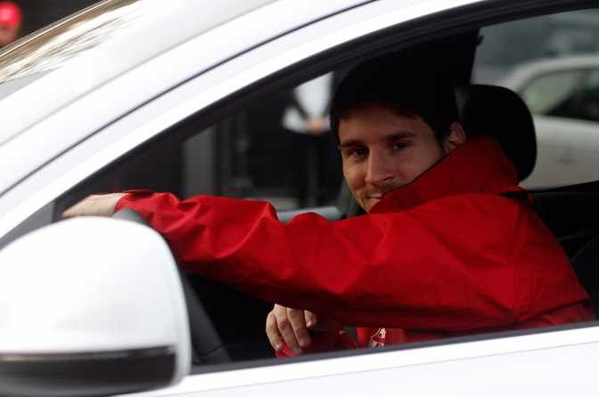 Így (nem) kell vezetni egy böszme Audit, ahogy a világ legjobbja, Messi mutatja. Puyol kapitány beérte egy Q5-össel (Fotó: marcamotor.com)