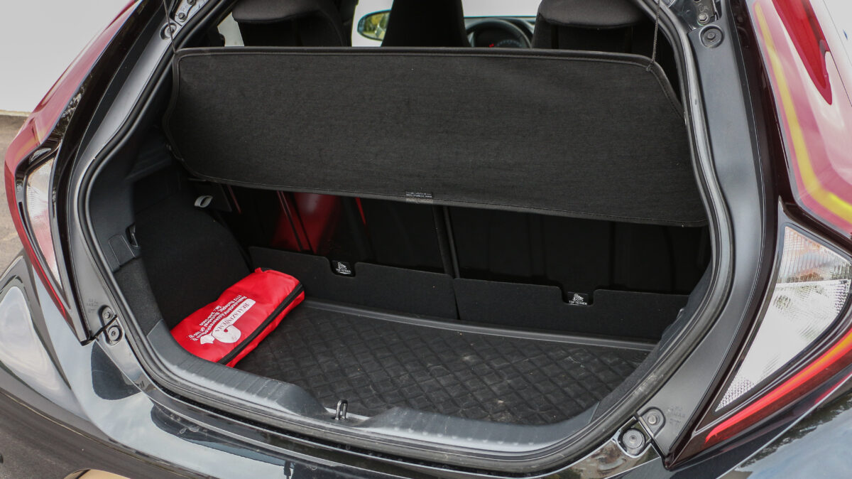 A hátsó ablakokkal sem fognak babrálni a lurkók, ugyanis az előző generációs Aygóhoz hasonlóan itt sem fér bele az aprócska ajtókeretbe az üveg, a kibillentős elefántfül ablakon pedig nem lehet kiesni, legfeljebb az ujját tudja odacsípni a rosszalkodó poronty. Ahol még a hátsó résznél is jobban érződik a növekedés, az a csomagtartó: 231 literes kapacitása be tudott fogadni két sporttáskát, egy teli kosarat és egy zsák krumplit is, mikor hárman átutaztunk vele az országon a teszthét során. Ha mégis több kéne, akkor a két üléstámla egyenként dönthető le, legfeljebb 829 literesre nőhet így a puttony.