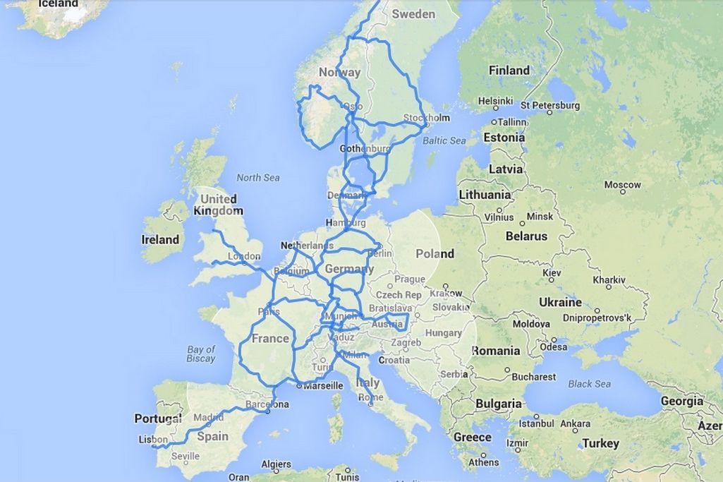 A Tesla töltőhálózata Európában, eddig 14 gyorstöltő állomással