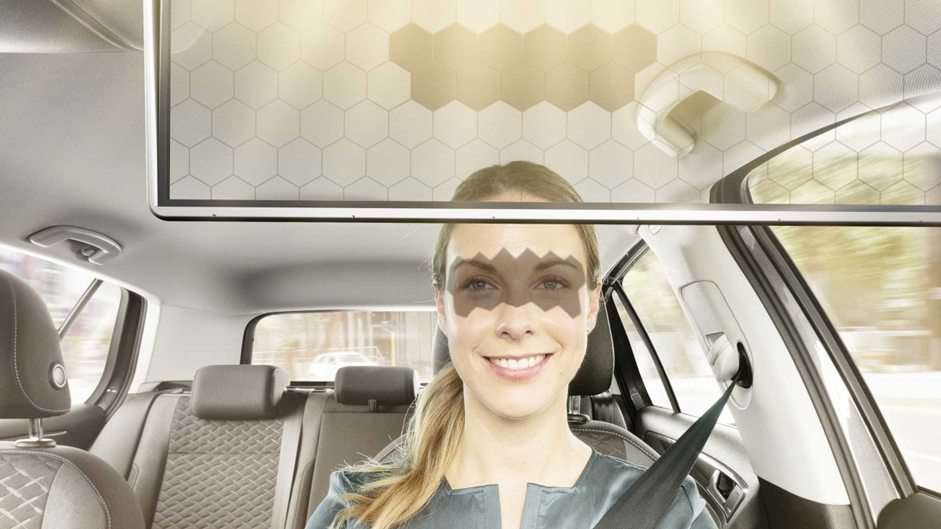 Gondoltak hát egy nagyot és Jason Zink, a Bosch technológiai szakértőjének vezetésével megalkották a virtuális napellenzőt (Virtual Visor), ami igazából egy átlátszó LCD panel. Ha nem világít szembe a nap, akkor átereszti a fényt és nem takar ki semmit a látótérből. Ha viszont a szemünkbe sütne a nap, akkor a rendszer arcfelismeréssel azonosítja, hogy hol van a szemünk és a napellenzőn csak annyi területet takar ki, amennyi éppen kell, hogy ne vakítson a fény.