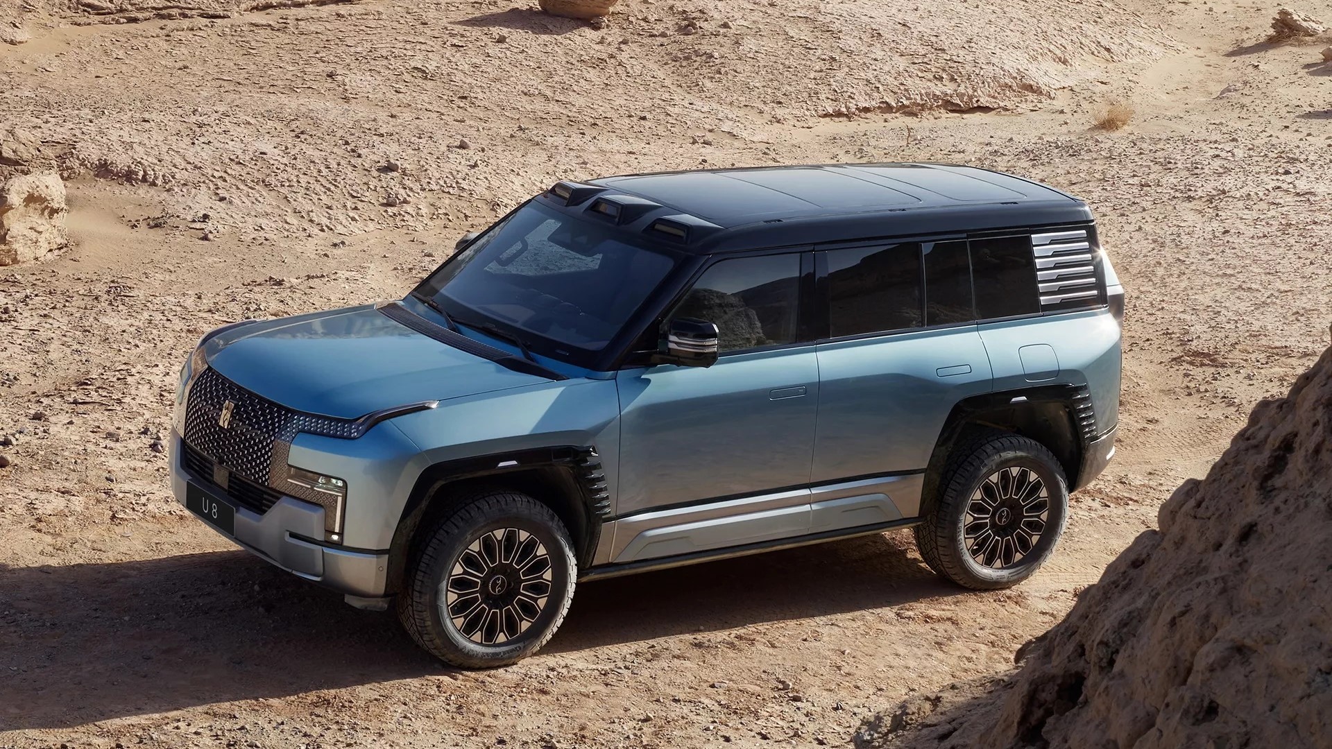 Nem tudnak leszokni a másolásról a kínaiak, most egy Defender-szerű járművet vett fel a kínálatába a BYD egyik márkája, a YangWang. Az U8 névre keresztelt terepjáró le sem tagadhatná a brit ihletést, de sikerült a kínai formai igényekhez alakítani. A maszk úgy néz ki, mintha valami furcsa lényt elcsapott volna a terepjáró. A LED fényforrás a géptetőre is felkúszik, a lefelé és felfelé terjeszkedésre pedig a hátsó fényforrások is rímelnek. A tervezőknek megtetszett a csíkos motívum, a tükrökre, a kerékjárati ívekre és a hátsó oszlopokra is vonalakat húztak, a stoptábla alakú pótkeréktartó is jópofa.