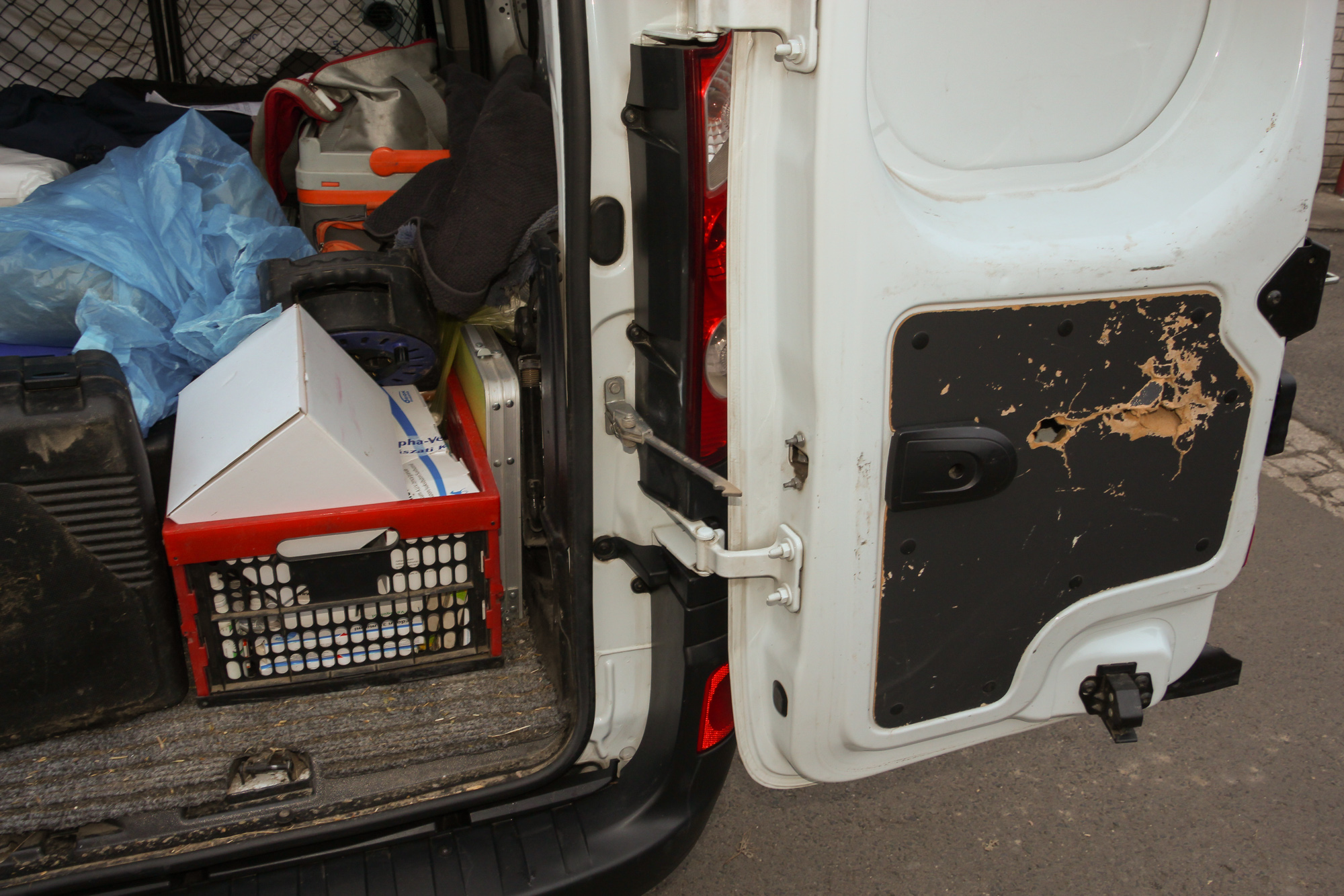 Ez az autó aztán kapott mindent. A lovardákig nem feltétlenül betonozott út vezet, s az sem titok, hogy a lovak gyógyítására felesküdött orvosok nem feltétlen autófanatikusok. Számukra sok esetben hasonló munkaeszköz az autó, mint annak rakterében egy szike. Ugyanakkor ők is fél életüket az autóban töltik, fontos, hogy az minél kényelmesebb legyen, s persze az is, hogy ne romoljon el, az állásidő minden „üzemben” kiesés, ami bizony ebben e szakmában is nagyon sokba kerül. A szinte mindig koszos és telepakolt Kangoo a fotózás előtt kapott ugyan mosást és takarítást, rakterét azonban nem volt mód kipakolni, ott csak használói látják át, hogy mi merre van, s ha nem is színültig, de teljes alapterületén „derékmagasságig” mindig telített. A normál, 4,28 méter hosszúságú (tehát nem 4,66 méteres Maxi) Kangoo raktere 3 köbméteres, amiből az állatorvosi üzem (lovakra specializálódva) jellemzően 1000-1200 liternyit mindenképp kihasznál, tehát ennél kisebb autó valóban nem lenne megfelelő.