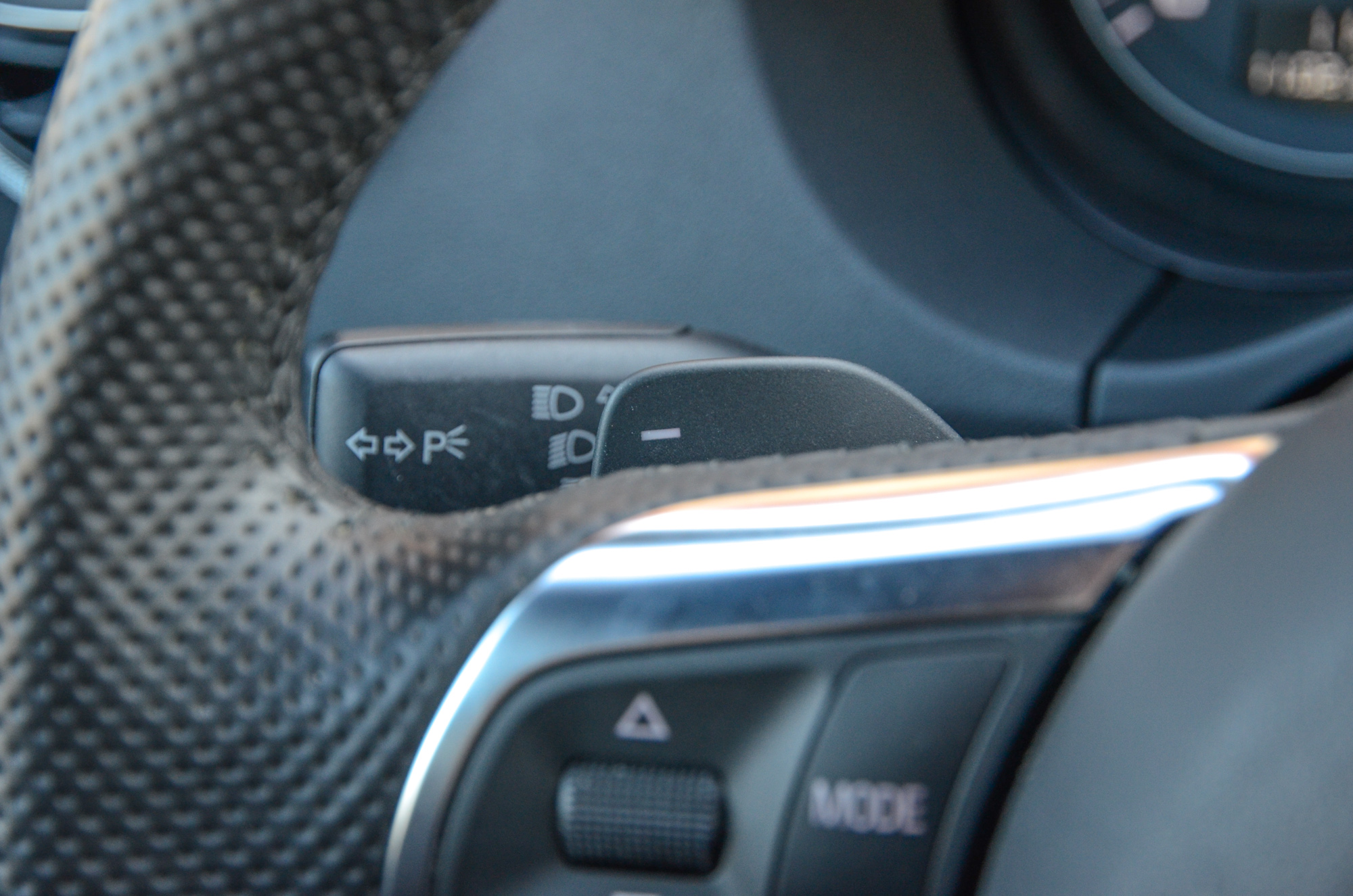 Többek között S line logó díszeleg a váltógombon, az ülés háttámláján és az alul egyenesen lecsapott háromküllős kormány alján is