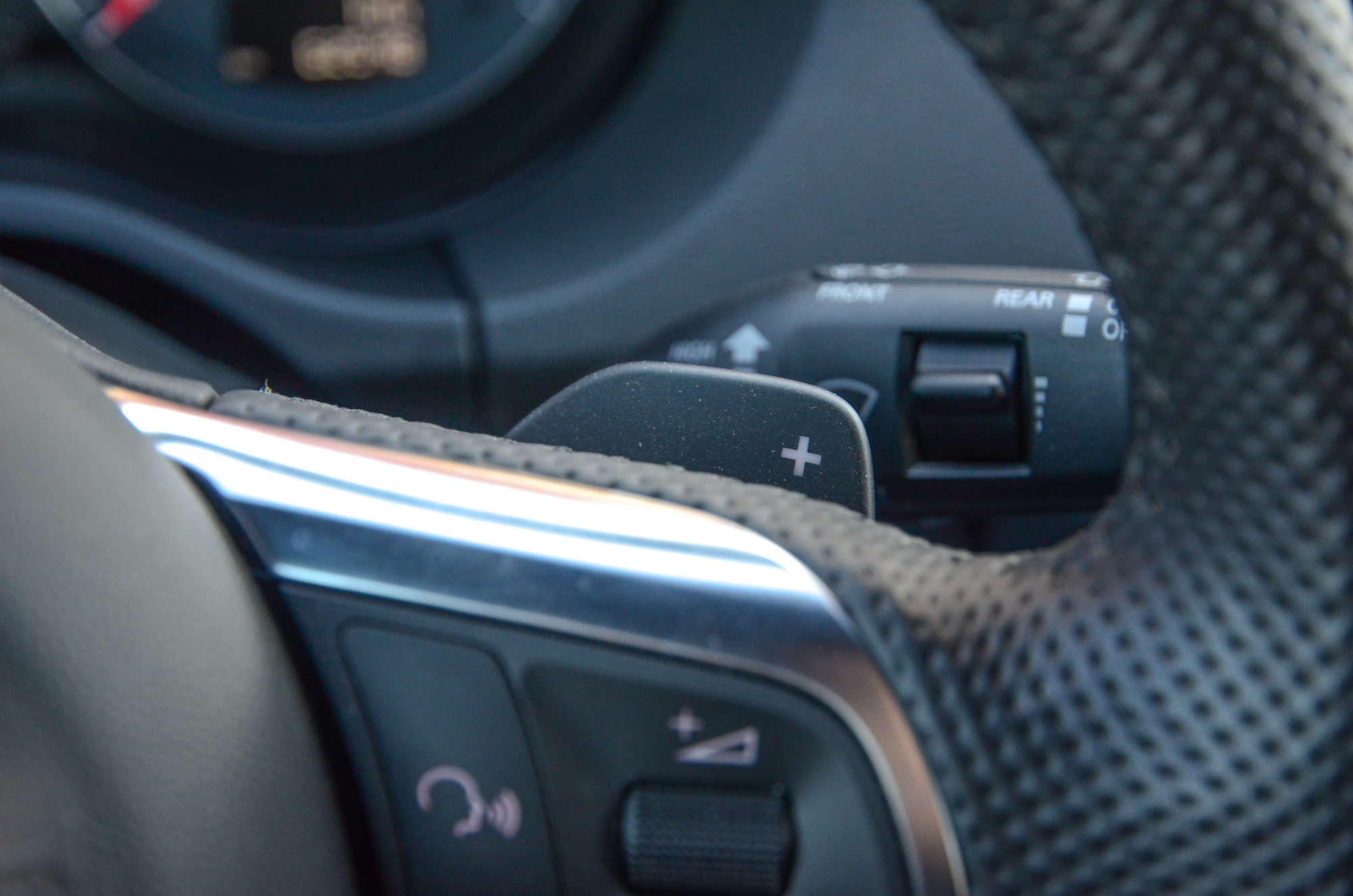 A bőr/Alcantara sportülések komoly oldaltartást adnak, az ülőlap tömése viszont igen kemény, hosszú távon ne csodálkozzunk, ha kényelmetlenül érezzük magunkat