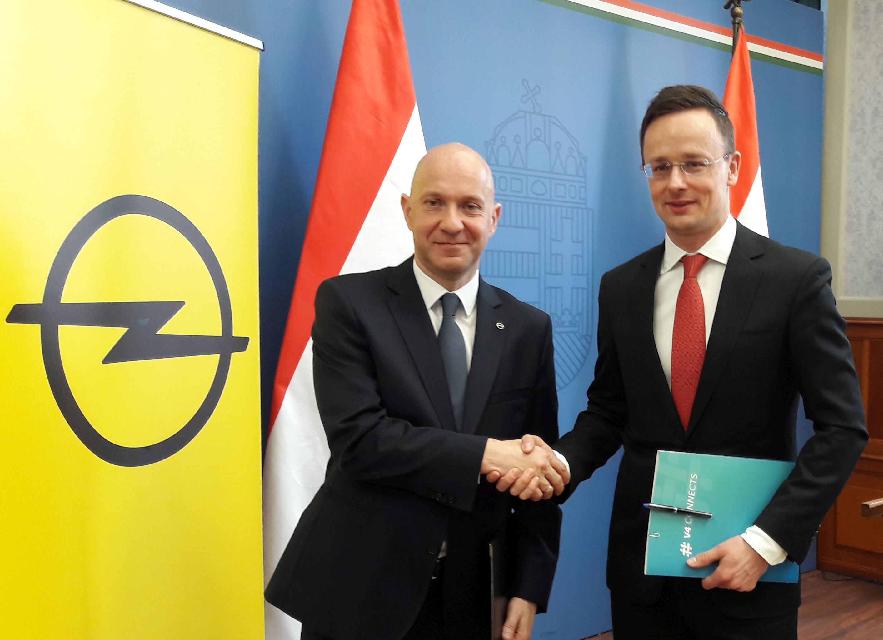 "Jó hír az Opelnek, a gyár dolgozóinak és jó hír a magyar gazdaságnak is" - a fotón Grzegorz Buchal és Szijjártó Péter