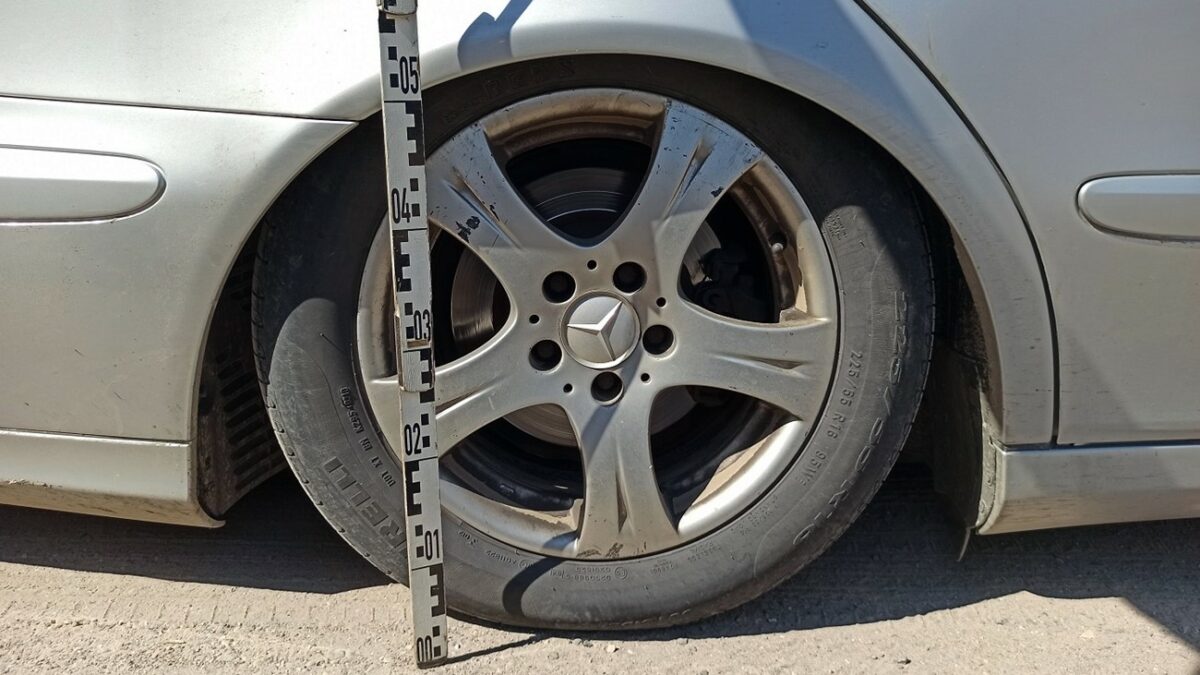Komoly futóműhibával állították meg ezt a Mercedest, a lengéscsillapítást és a gyári magasságot hírből sem ismerte az öreg kombi jobb hátulja. A legfélelmetesebb része a dolognak, hogy az M5-ös autópályán, egy megpakolt trélert húzva közlekedett.