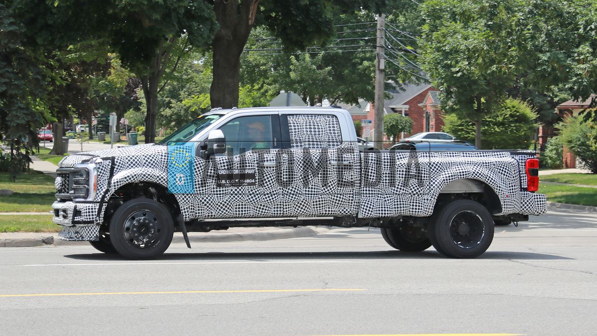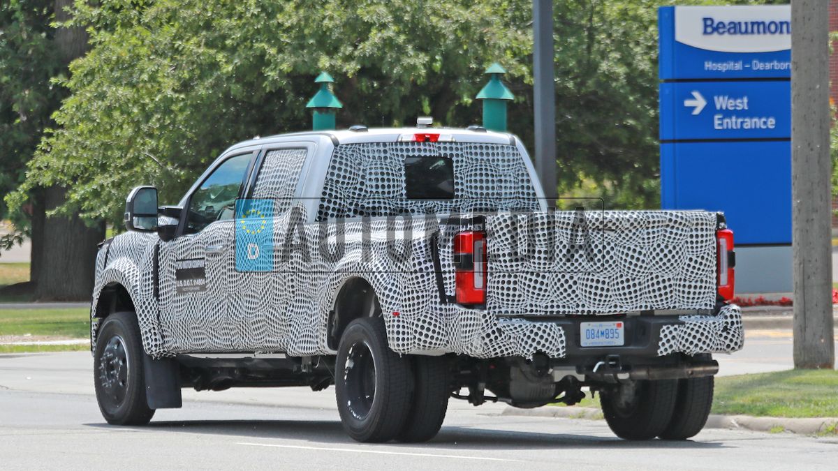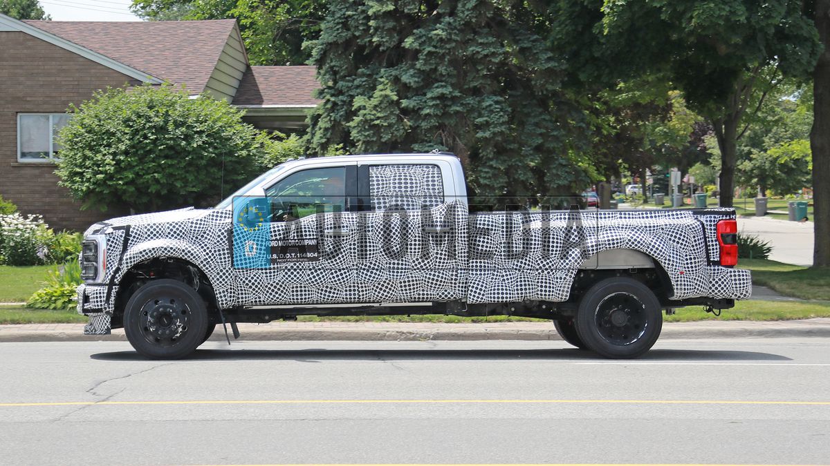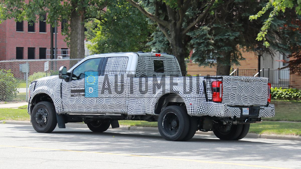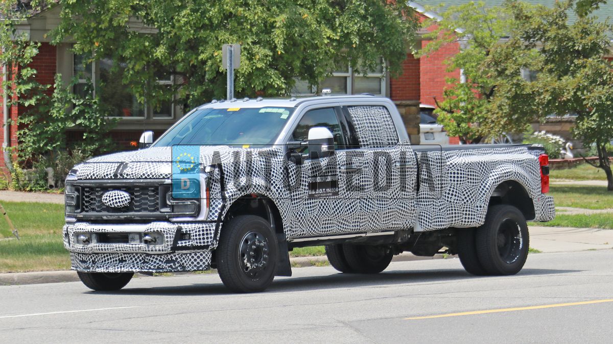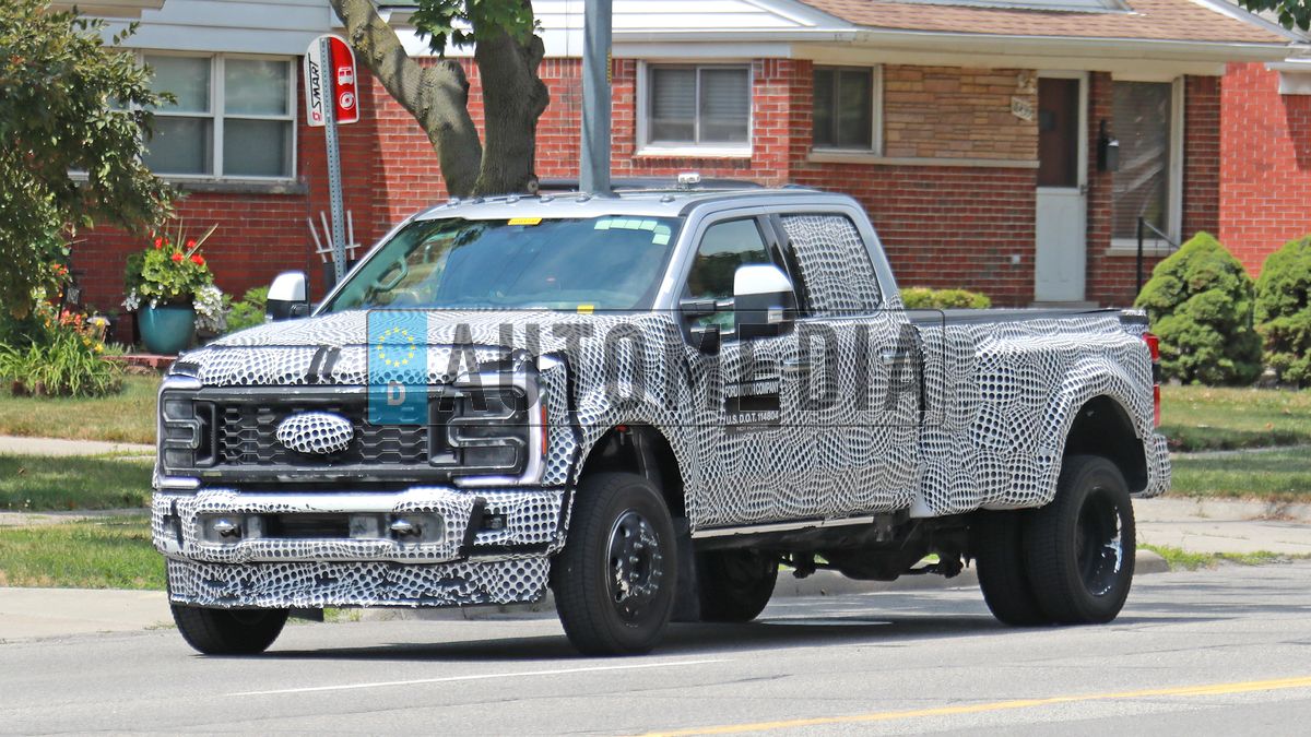 A 2023-as modellévre szánt Ford Super Duty King Ranch szintén óriási, a részletek viszont rejtve maradnak, jelenleg még erősen álcázzák az ősszel érkező típust. A friss modell is megtartotta a platós Fordokra jellemző szögletességet, a tengelytáv óriási, a nagy súlyok cipelésében a hátsó dupla kerekek segítenek. Itt a nagy test. nagy