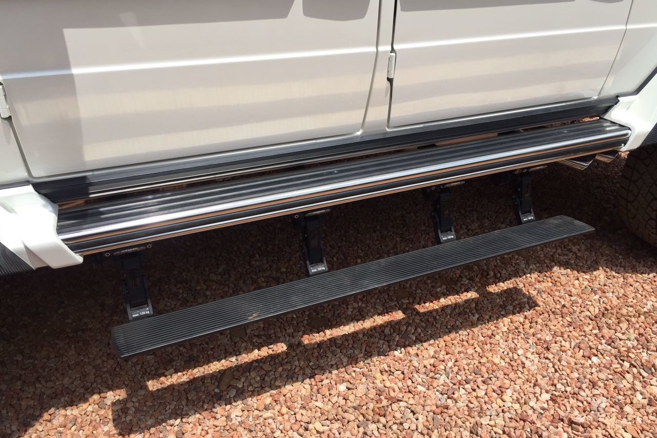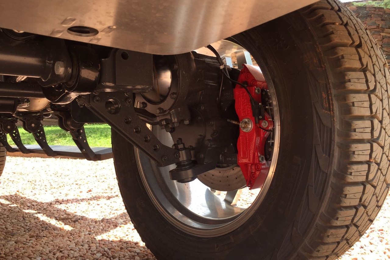 Válaszfalat is raktak az első ülések mögé, igazi sofőrös terepjáró. A hátul ülőknek a szabad ég mellett néhány tablet és egy egész marhacsordára való bőrmennyiség fogadja
