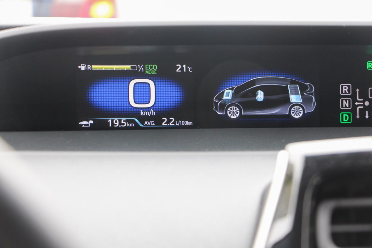 Katalógusérték szerint 3,3 l/100 km a vegyes fogyasztás 17 colos felnikkel. Tesztátlagunk némileg magasabb lett, de egy-egy etapon simán alá lehetett menni. A Prius okos tanácsaival bárkiből takarékos sofőrt farag